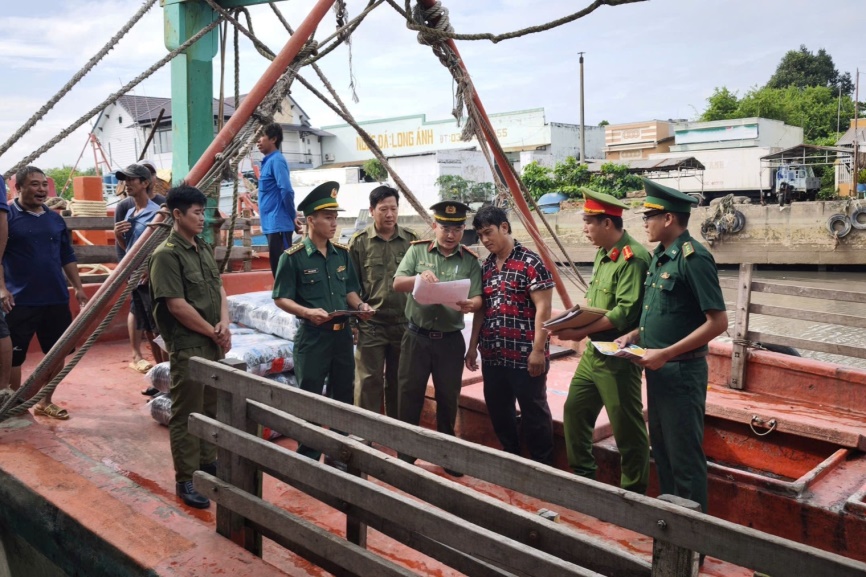 Công an xã phối hợp cùng các lực lượng tăng cường công tác tuyên truyền tại cảng cá Trần Đề