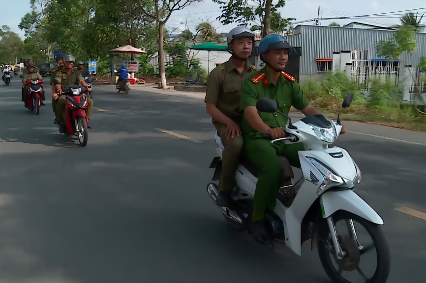 Công an xã Trần Đề và lực lượng tham gia bảo vệ an ninh, trật tự ở cơ sở đẩy mạnh tuần tra, kiểm soát