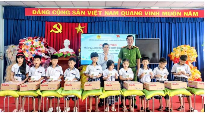 Thực hiện phương châm “Gần dân nhất”, Công an phường đã chủ động phối hợp rà soát, nắm chắc tình hình, lựa chọn đúng đối tượng là các em có hoàn cảnh đặc biệt khó khăn để kịp thời động viên, hỗ trợ. Công tác chuẩn bị được triển khai chặt chẽ, bảo đảm đúng người, đúng mục đích, thể hiện tinh thần trách nhiệm, ý thức vì Nhân dân phục vụ của lực lượng Công an cơ sở. Tại buổi trao quà, đồng chí Trung tá Nguyễn Minh Trường, Phó Trưởng Công an phường đã trực tiếp trao tặng mỗi em 01 phần quà gồm 01 thùng mì, 10 kg gạo và 200.000 đồng tiền mặt, từ nguồn kinh phí xã hội hóa. Tổng cộng 20 phần quà đã được trao tận tay các em học sinh. Những phần quà tuy giá trị vật chất không lớn nhưng chứa đựng tình cảm, sự quan tâm, sẻ chia của tập thể cán bộ, chiến sĩ Công an phường, góp phần tiếp thêm động lực để các em vượt qua khó khăn, tiếp tục phấn đấu học tập tốt.