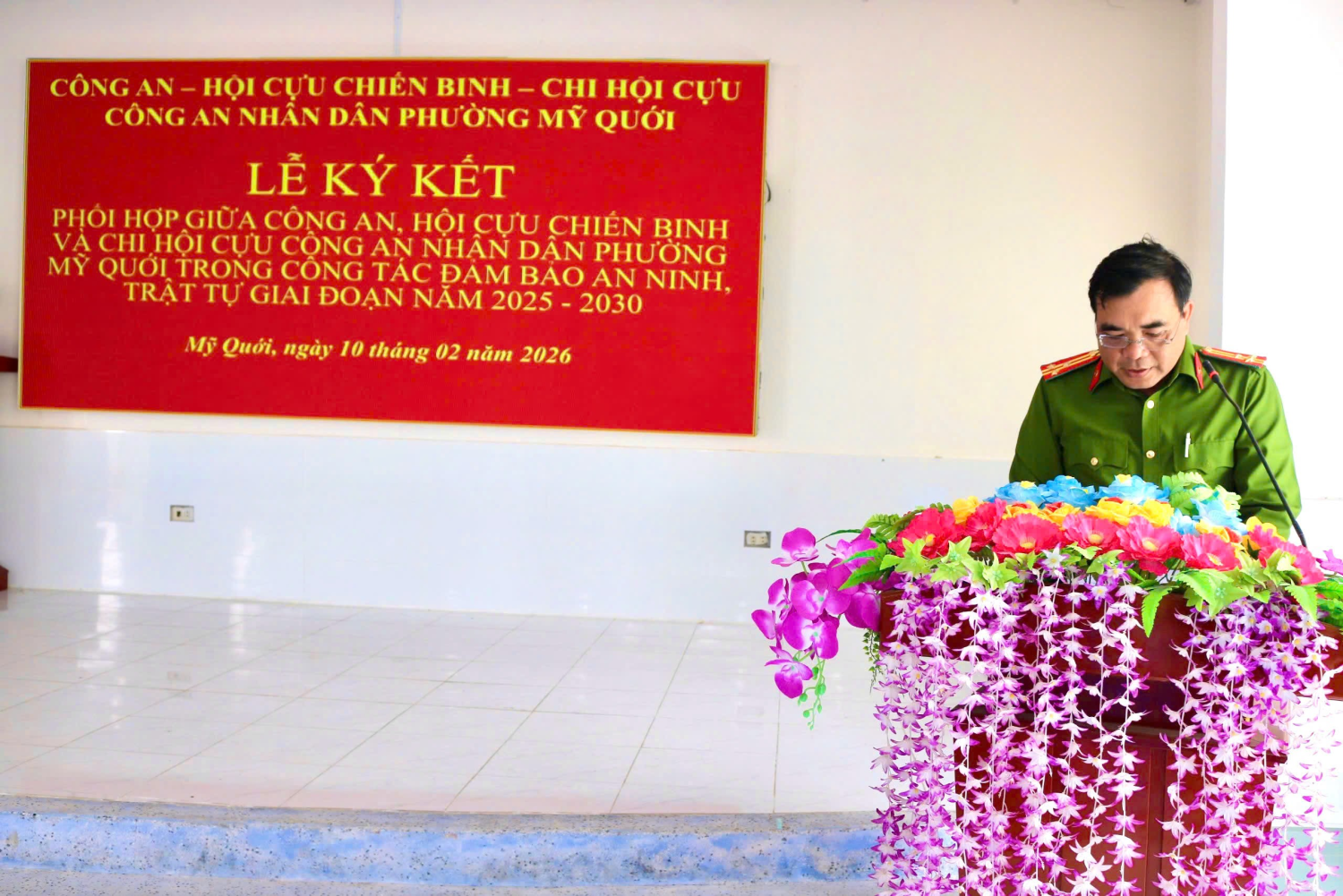 Ngày 10/02/2026, Công an phường tham mưu Đảng ủy, Ủy ban nhân dân phường tổ chức Lễ ký kết Kế hoạch phối hợp. Tham dự buổi lễ có đồng chí Nguyễn Hồng Duyên, Ủy viên Ban Thường vụ Đảng ủy, Phó Chủ tịch Ủy ban nhân dân phường; đồng chí Thượng tá Sơn Minh Chiến, Trưởng Công an phường; đồng chí Nguyễn Công Hầu, Phó Chủ tịch Ủy ban Mặ trận Tổ quốc Việt Nam phường, Chủ tịch Hội Cựu chiến binh; đồng chí Trần Văn Nhẫn, Chi hội trưởng Chi hội Cựu Công an nhân dân phường; cùng các đồng chí chỉ huy Công an phường và hội viên các hội.