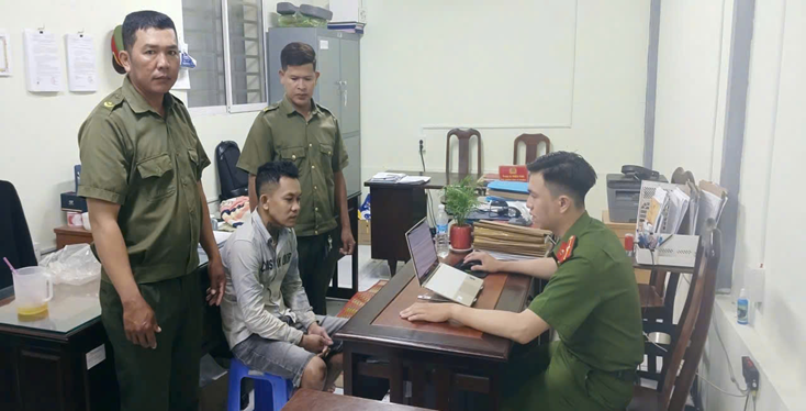 Đối tượng truy nã Lâm Hơn (ngồi bên trái) tại cơ quan Công an