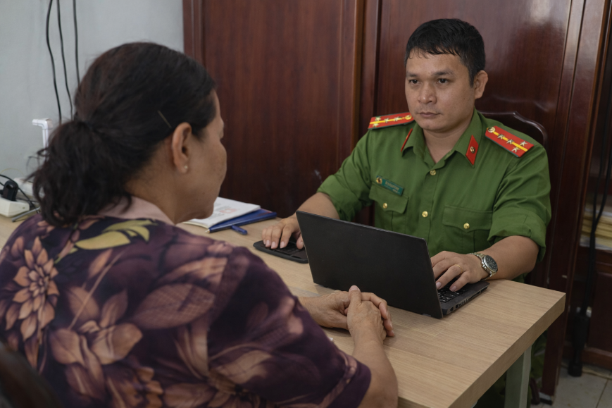 Công an xã Vĩnh Thạnh làm việc với trường hợp báo tin giả, cung cấp thông tin không đúng sự thật.