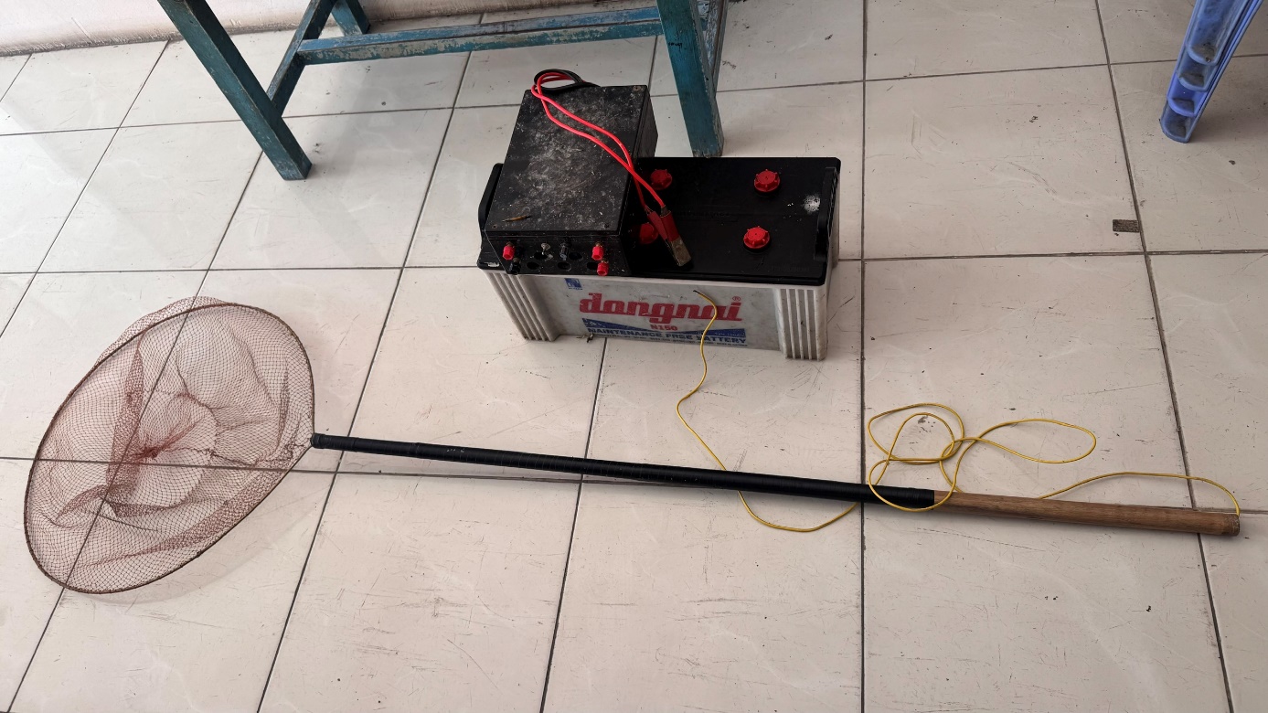 Đối tượng vi phạm là T.V.Q (sinh năm 1981, ngụ ấp Thới Hưng, xã Cờ Đỏ) bị bắt quả tang khi đang sử dụng thiết bị kích điện để đánh bắt thủy sản.