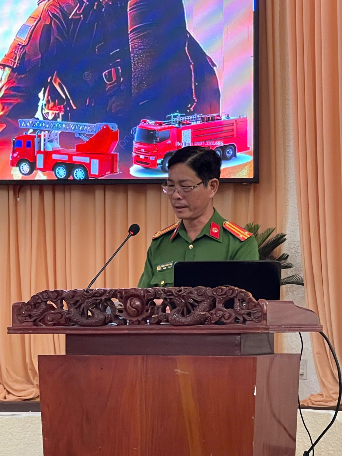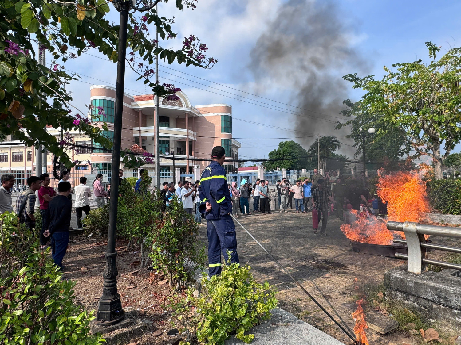 Đại diện Công an xã Hiệp Hưng triển khai tại buổi tập huấn Cán bộ, chiến sĩ Công an xã Hiệp Hưng tổ chức thực hành phòng cháy, chữa cháy