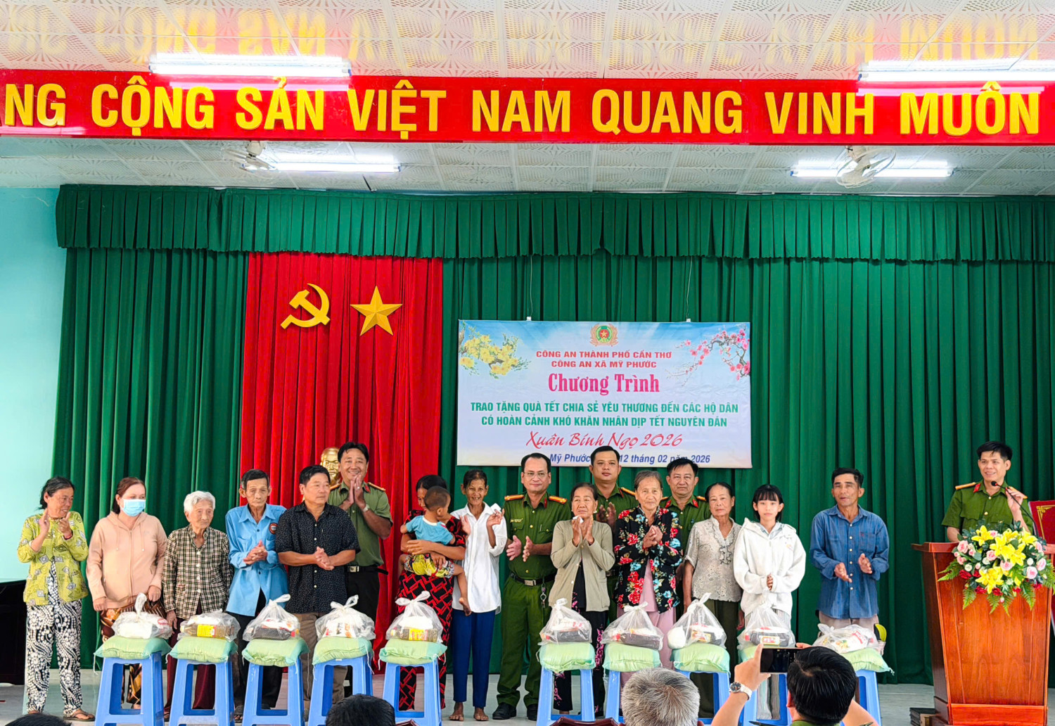 Quang cảnh Chương trình trao tặng quà Tết của Công an xã Mỹ Phước nhân dịp Xuân Bính Ngọ năm 2026.