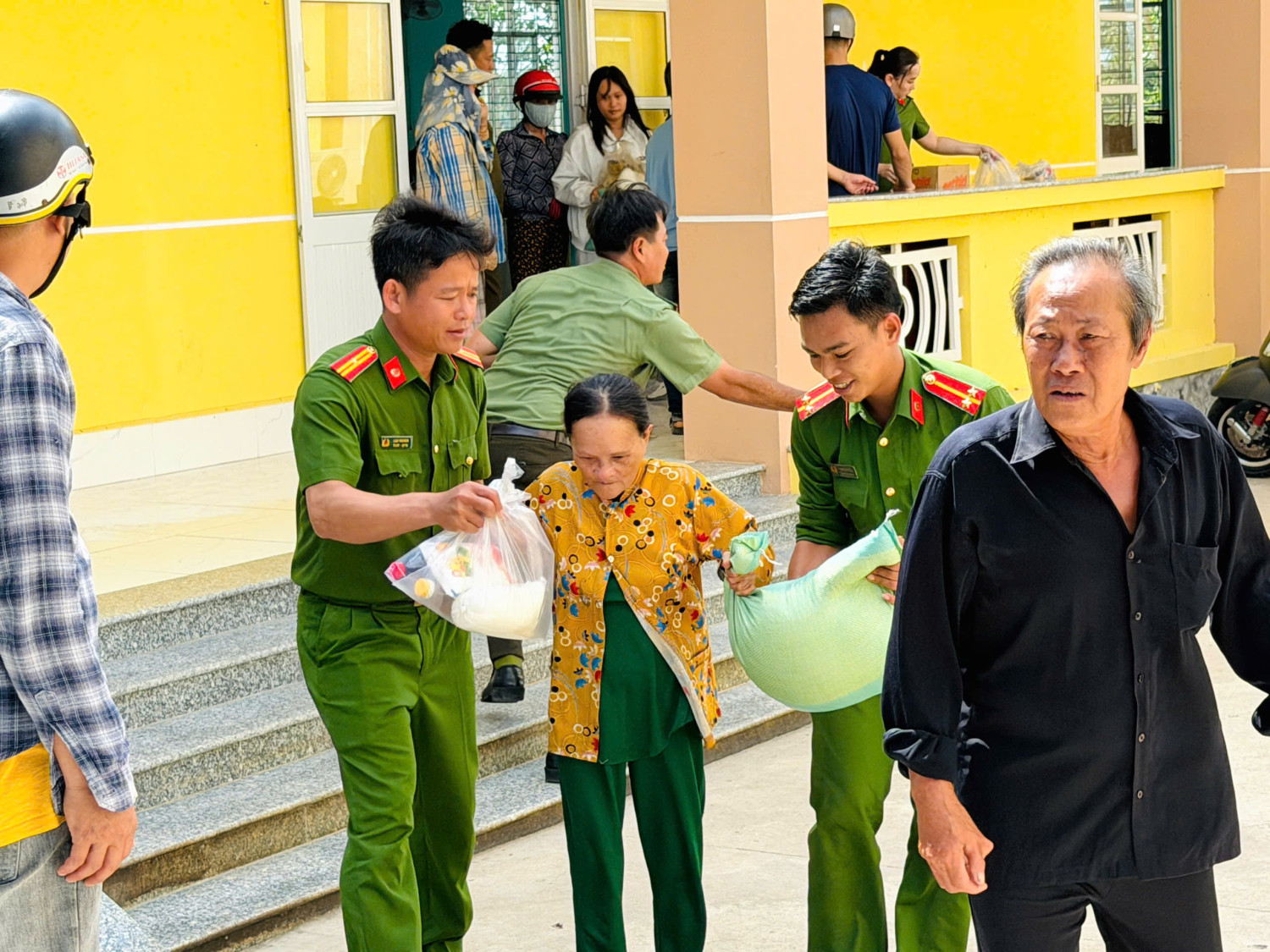 Sự gần gũi, chân tình của cán bộ Công an xã khi trao quà, sẻ chia cùng Nhân dân.