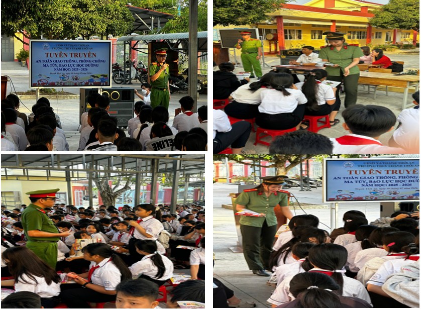 Cũng trong sáng cùng ngày, Chi đoàn Công an xã Thạnh Thới An phối hợp Tổ Cảnh sát phòng, chống tội phạm Công an xã tổ chức tuyên truyền pháp luật về phòng, chống bạo lực học đường; phòng, chống ma túy và an toàn giao thông tại Trường Trung học cơ sở Thạnh Thới An. Tại buổi tuyên truyền, cán bộ Công an xã đã phổ biến các quy định pháp luật liên quan, phân tích nguyên nhân, hậu quả của bạo lực học đường và tệ nạn ma túy; cảnh báo các phương thức, thủ đoạn lôi kéo, dụ dỗ học sinh sử dụng ma túy; đồng thời hướng dẫn kỹ năng nhận diện, phòng tránh và tự bảo vệ bản thân. Nội dung tuyên truyền về an toàn giao thông được truyền đạt cụ thể, dễ hiểu, nhấn mạnh việc đội mũ bảo hiểm đúng quy định, đi đúng phần đường, làn đường; không điều khiển phương tiện khi chưa đủ tuổi; chấp hành tín hiệu đèn giao thông; không tụ tập gây mất trật tự trước cổng trường. Với hình thức truyền đạt sinh động, gắn với tình huống thực tế, buổi tuyên truyền đã thu hút sự quan tâm, hưởng ứng tích cực của giáo viên và học sinh, góp phần xây dựng môi trường học đường an toàn, lành mạnh; nâng cao ý thức chấp hành pháp luật trong lứa tuổi thanh thiếu niên. Chuỗi hoạt động trên thể hiện tinh thần chủ động, trách nhiệm và vai trò nòng cốt của Công an xã Thạnh Thới An trong công tác phòng ngừa, đấu tranh với các hành vi vi phạm pháp luật ngay từ cơ sở; đồng thời là hoạt động thiết thực hưởng ứng phong trào thi đua “Ba nhất: Kỷ luật nhất – Trung thành nhất – Gần dân nhất” gắn với chương trình Xuân tình nguyện năm 2026 của đoàn viên Công an xã./.