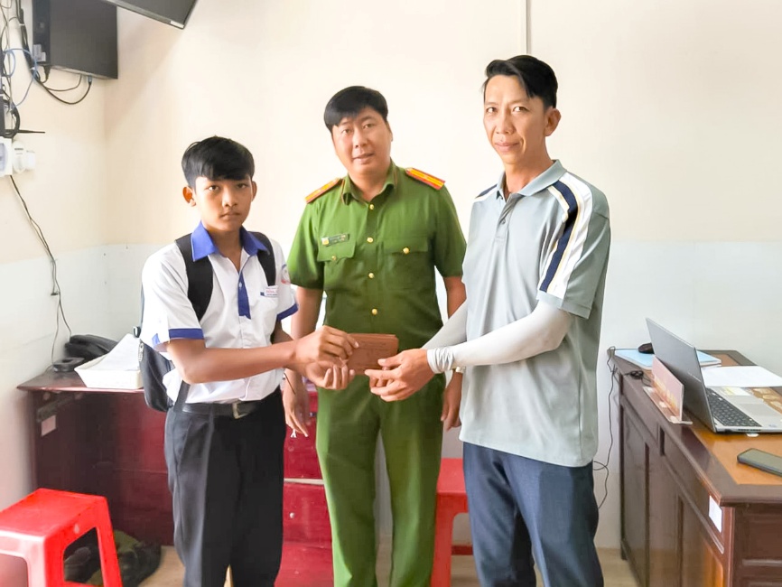 Trước đó, vào khoảng 10 giờ 50 phút cùng ngày, em Nguyễn Hoàng Vĩ (sinh năm 2012, trú tại ấp Hòa Nhạn, xã Hòa Tú), học sinh Trường THCS Hòa Tú, trên đường đi học về đã nhặt được một ví da. Bên trong có nhiều giấy tờ tùy thân và tiền mặt. Ngay sau đó, em Vĩ đã mang toàn bộ tài sản đến Công an xã Hòa Tú để giao nộp.Qua kiểm tra, tài sản gồm: 01 thẻ căn cước công dân, 01 giấy phép lái xe mang tên Nguyễn Văn Tươi, 01 thẻ bảo hiểm y tế và số tiền 1.029.000 đồng.