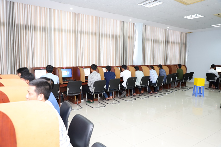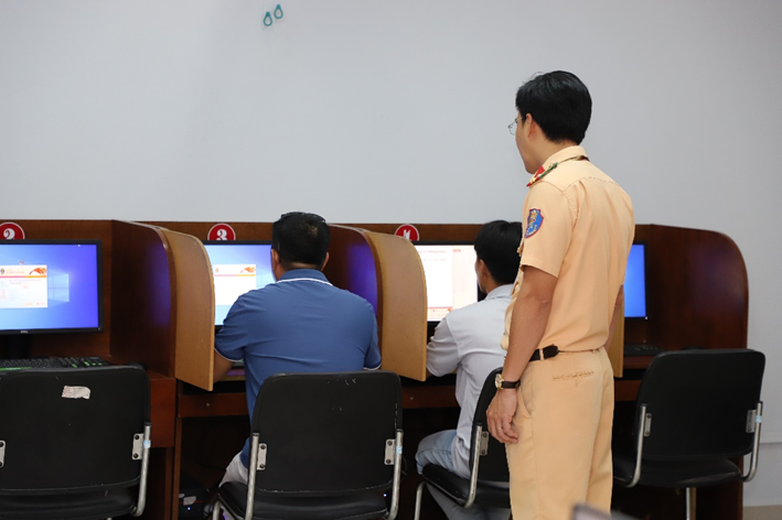 Các thí sinh làm bài thi lý thuyết trên máy tính