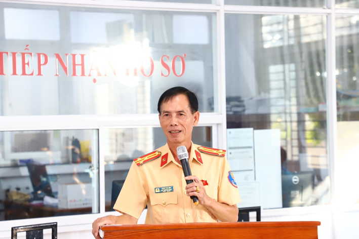 Thượng tá Trần Tấn Bền, Phó Trưởng phòng Cảnh sát giao thông, Công an thành phố, Chủ tịch Hội đồng sát hạch phát biểu khai mạc kỳ thi
