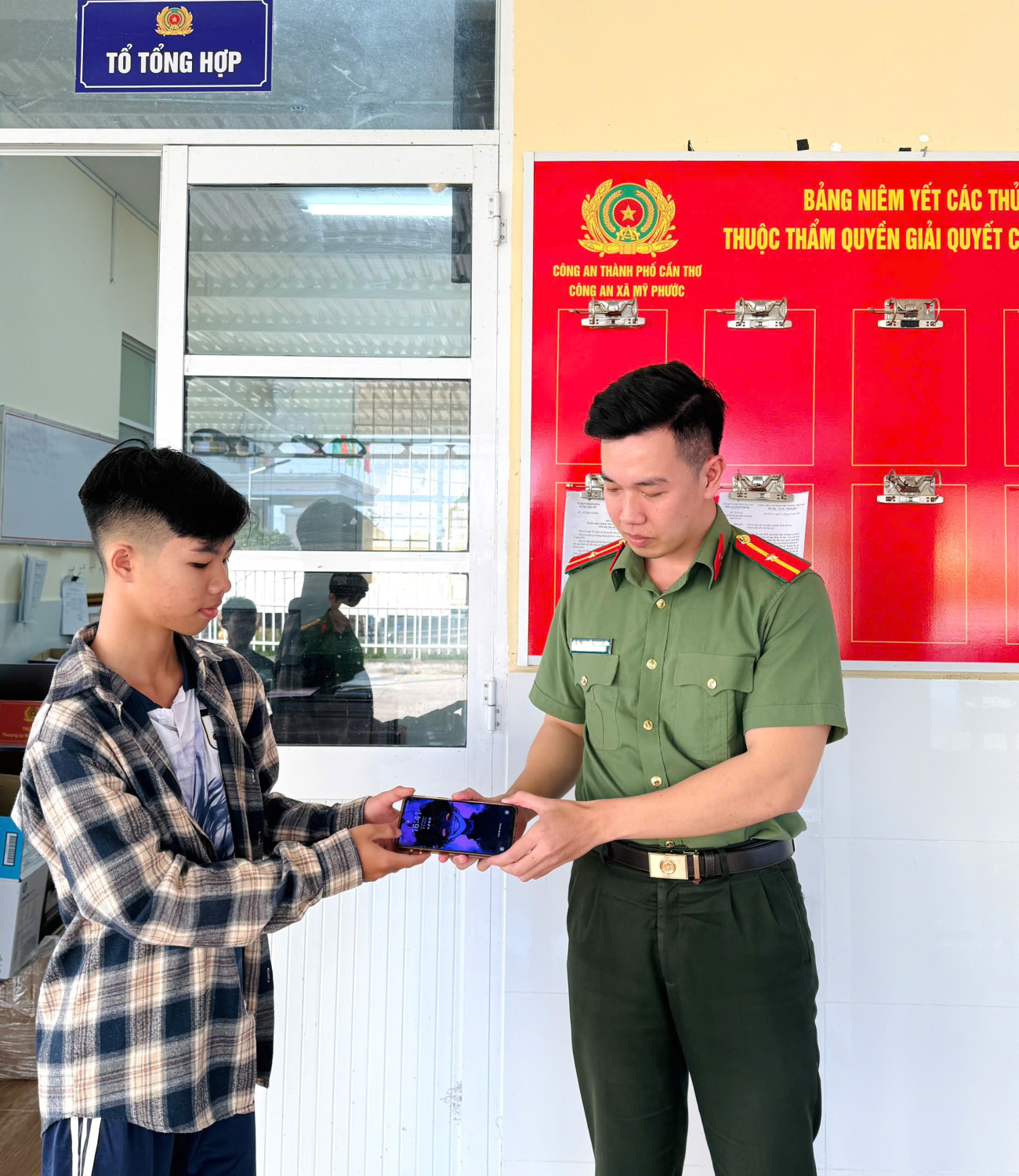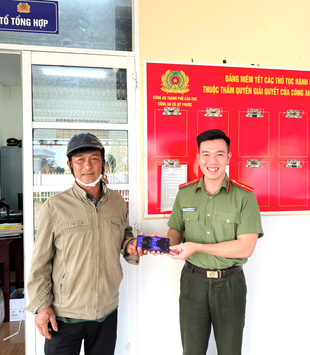 Ngay sau khi tiếp nhận tin báo, Công an xã Mỹ Phước đã khẩn trương tiến hành xác minh, xác định chủ sở hữu chiếc điện thoại là ông Ngô Thanh Vũ, sinh năm 1970, trú tại ấp Phước Lợi A, xã Mỹ Phước, thành phố Cần Thơ. Công an xã đã hoàn tất các thủ tục theo quy định và tổ chức trao trả tài sản cho ông Vũ trong thời gian sớm nhất, bảo đảm đúng trình tự, quy định của pháp luật.