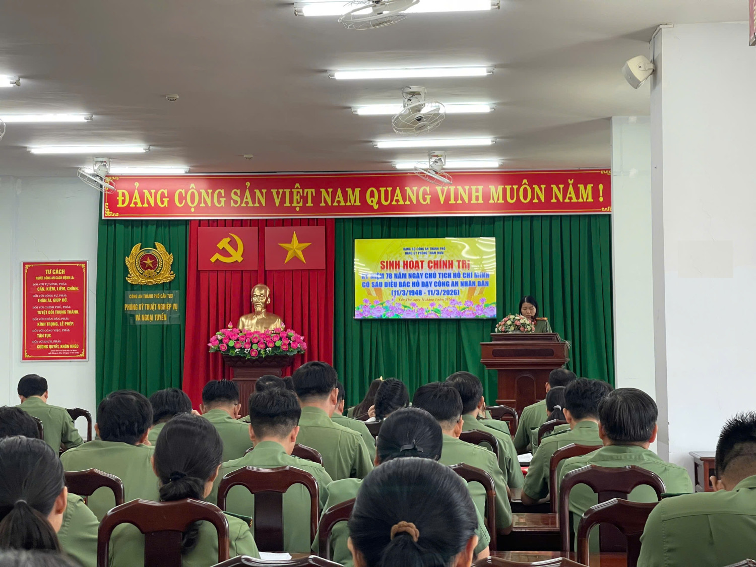 Ý nghĩa ra đời của Sáu điều Bác Hồ dạy Công an nhân dân Những lời dạy của Bác Hồ với Công an nhân dân giản dị, ân cần mà hàm chứa những giá trị tư tưởng đạo đức nhân văn cao quý, thể hiện sự nhất quán giữa lời nói và việc làm, giữa giáo dục đạo đức và tự mình nêu gương thực hành đạo đức; mang ý nghĩa cốt lõi là xây dựng lực lượng cách mạng tuyệt đối trung thành, tận tụy phục vụ Nhân dân, vững vàng đạo đức và mưu trí trong chiến đấu. Định hình rõ tư cách người công an cách mạng với 06 chuẩn mực rèn luyện về đạo đức, công việc, quan hệ với đồng chí, Nhân dân và kẻ địch (Cần, kiệm, liêm, chính; Thân ái giúp đỡ; Tuyệt đối trung thành; Kính trọng, lễ phép; Tận tụy; Cương quyết, khôn khéo). Là kim chỉ nam để xây dựng lực lượng Công an nhân dân thật sự trong sạch, vững mạnh, chính quy, tinh nhuệ, hiện đại. Là chuẩn mực đạo đức, phong cách, phương châm hành động, thái độ ứng xử, là mục tiêu phấn đấu, tu dưỡng, rèn luyện trong suốt cuộc đời hoạt động của mỗi cán bộ, chiến sĩ Công an, dù ở bất kỳ cương vị, hoàn cảnh công tác nào. Những phẩm chất đó là nhân tố quyết định để lực lượng Công an nhân dân hoàn thành xuất sắc mọi yêu cầu, nhiệm vụ. Vận dụng sáng tạo Sáu điều Bác Hồ dạy Công an nhân dân vào thực tiễn công tác tham mưu Cùng với các lực lượng khác trong Công an nhân dân, lực lượng tham mưu Công an thành phố Cần Thơ không ngừng học tập, vận dụng sáng tạo Sáu điều Bác Hồ dạy Công an nhân dân vào thực tiễn công tác, góp phần nâng cao chất lượng tham mưu phục vụ công tác lãnh đạo, chỉ huy, đáp ứng yêu cầu nhiệm vụ bảo đảm an ninh, trật tự trong tình hình mới, trong đó: Thứ nhất, quán triệt lời dạy của Người “Đối với bản thân phải cần, kiệm, liêm, chính”. Theo đó, mỗi cán bộ làm công tác tham mưu cần rèn luyện bản thân “kỷ luật nhất”; giữ vững bản lĩnh chính trị, phẩm chất đạo đức; tâm huyết, trách nhiệm, tận tụy với công việc được giao; tiết kiệm, không xa hoa, lãng phí; giữ mình trong sạch, trung thực, ngay thẳng, công tâm, khách quan; nghiêm túc, gương mẫu chấp hành quy định của Đảng, pháp luật của Nhà nước, quy tắc ứng xử, lễ tiết, tác phong, điều lệnh Công an nhân dân. “Tự soi, tự sửa, tự rèn luyện” để trở thành phiên bản tốt nhất của chính mình. Trong công tác tham mưu, phải đề ra được các giải pháp, nhiệm vụ phù hợp nhất, hiệu quả nhất, chính xác nhất, khách quan nhất, không vì lợi ích của một nhóm, một tập thể, một cá nhân mà phải lấy chất lượng, nhiệm vụ chung làm mục tiêu cuối cùng vì sản phẩm của công tác tham mưu có tác động, ảnh hưởng đến toàn bộ hoạt động chỉ đạo, điều hành của Công an toàn thành phố. Thứ hai, thực hiện lời dạy “Đối với đồng sự phải thân ái giúp đỡ”, cán bộ làm công tác tham mưu cần phát huy tinh thần đoàn kết, tương thân, tương ái, chia sẻ, kết nối, phối hợp chặt chẽ với đồng chí, đồng đội, các đơn vị, địa phương trong trao đổi thông tin, chia sẻ kinh nghiệm, từ đó nâng cao hiệu quả công tác tham mưu tổng hợp, bảo đảm phục vụ tốt công tác lãnh đạo, điều hành của Công an thành phố. Cán bộ làm công tác tham mưu cần học hỏi từ đồng chí, đồng đội, lãnh đạo, chỉ huy, tự học, tự đào tạo, có tinh thần cộng đồng trách nhiệm vì kết quả chung của tập thể đơn vị. Thứ ba, quán triệt lời dạy “Đối với Chính phủ phải tuyệt đối trung thành”. Phẩm chất trung thành của Công an đối với Đảng xuất phát từ tính chất, nhiệm vụ đặc biệt của Công an được Đảng giao cho đó là bảo vệ Đảng, Nhà nước, Nhân dân, bảo vệ chế độ xã hội chủ nghĩa và bảo đảm an ninh quốc gia, giữ gìn trật tự an toàn xã hội. Do đặc thù của công tác tham mưu là thường xuyên tiếp cận, triển khai, cụ thể hóa các đường lối, chủ trương, nghị quyết của Đảng, chính sách, pháp luật của Nhà nước; vì vậy, mỗi cán bộ tham mưu phải là cá nhân “trung thành nhất” với Đảng, Nhà nước, Chính phủ và Nhân dân; luôn đặt lợi ích quốc gia - dân tộc, lợi ích chung của Đảng, Nhà nước và của Nhân dân lên trên hết, trước hết; luôn giữ vững bản lĩnh, khí tiết của người Công an cách mệnh, thống nhất giữa tư tưởng và hành động, hết lòng cống hiến phục vụ Nhân dân, vì Đảng, vì dân mà hy sinh quên mình và chấp hành mệnh lệnh, chỉ đạo của cấp trên, gương mẫu trong mọi nhiệm vụ; mọi biểu hiện “tự diễn biến”, “tự chuyển hóa” đều không thể chấp nhận, xảy ra đối với lực lượng làm công tác tham mưu trong Công an nhân dân. Thứ tư, thực hiện lời dạy “Đối với nhân dân phải kính trọng, lễ phép”. Kính trọng, lễ phép với Nhân dân vừa là phẩm chất chính trị, vừa là yêu cầu trong công tác và chiến đấu của Công an, là sự kế thừa những tinh hoa trong đ
