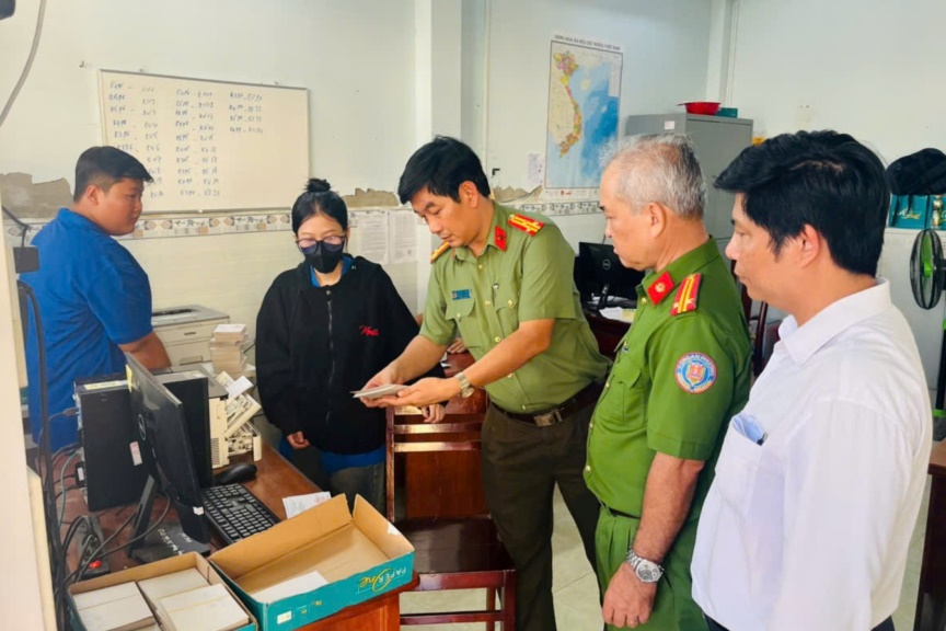 Thượng tá Võ Minh Thắng, Trưởng Công an phường Sóc Trăng kiểm tra công tác in thẻ cử tri