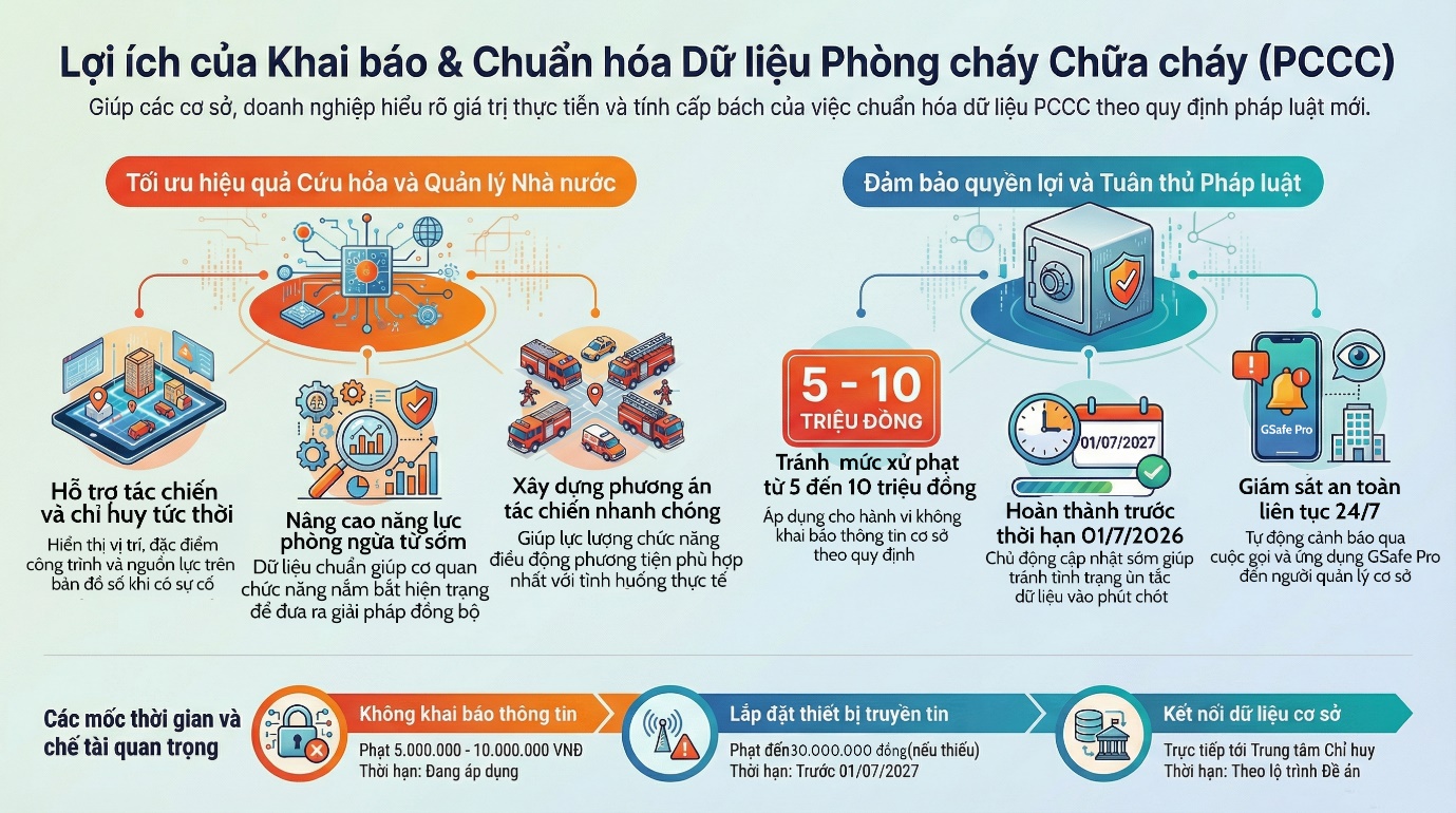 Theo quy định tại Nghị định số 105/2025/NĐ-CP, việc lắp đặt thiết bị truyền tin báo cháy kết nối Trung tâm Chỉ huy là yêu cầu bắt buộc đối với các cơ sở thuộc diện quản lý. Lộ trình triển khai gồm các mốc thời gian quan trọng: từ ngày 01/7/2025 quy định chính thức có hiệu lực thi hành; đến ngày 01/01/2026 các địa phương hoàn thành triển khai theo kế hoạch; và chậm nhất ngày 01/7/2027 các cơ sở phải hoàn thành việc lắp đặt, kết nối hệ thống. Đối với các hành vi vi phạm, Nghị định số 106/2025/NĐ-CP quy định rõ mức xử phạt hành chính. Cụ thể, hành vi không khai báo thông tin cơ sở có thể bị phạt từ 5.000.000 đồng đến 10.000.000 đồng; hành vi không trang bị, lắp đặt hoặc cố ý ngắt kết nối thiết bị truyền tin báo cháy có thể bị xử phạt đến từ 20.000.000 đồng đến 30.000.000 đồng, kèm theo yêu cầu khắc phục theo quy định. Công an thành phố đề nghị các cơ quan, tổ chức, doanh nghiệp và hộ kinh doanh thuộc diện quản lý chủ động rà soát, thực hiện khai báo, chuẩn hóa dữ liệu và lắp đặt thiết bị truyền tin báo cháy theo đúng lộ trình; tránh tình trạng dồn ứ, quá tải khi đến thời điểm cận hạn, đồng thời bảo đảm quyền lợi, trách nhiệm và tuân thủ pháp luật. Việc triển khai Hệ thống truyền tin báo cháy GSafe và chuẩn hóa dữ liệu PCCC không chỉ là yêu cầu bắt buộc mà còn là giải pháp thiết thực nhằm bảo vệ tính mạng, tài sản của nhân dân, góp phần xây dựng môi trường an toàn, văn minh, giữ vững an ninh, trật tự trên địa bàn thành phố./.