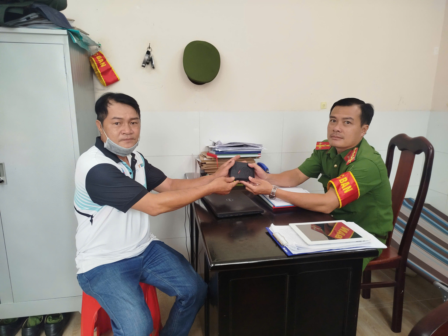 Anh Nguyễn Thanh Phong vui mừng nhận lại tài sản trong vòng 24 giờ kể từ khi Công an xã tiếp nhận.