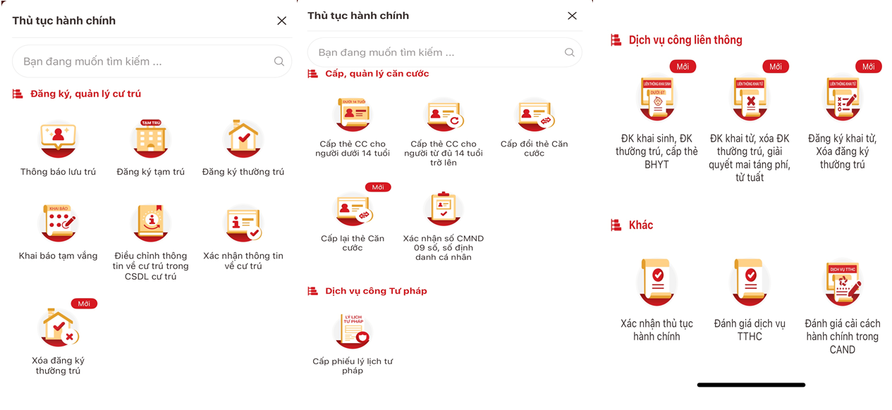 Trong thời gian qua, ứng dụng VNeID đã trở thành “trợ lý số” hữu ích trong đời sống người dân, như: Tích hợp thông tin căn cước, thẻ bảo hiểm y tế, thông tin an sinh xã hội, thông tin cư trú, tiếp nhận kiến nghị phản ánh về an ninh, trật tự và thực hiện nhiều thủ tục hành chính… Để tiếp tục mở rộng tiện ích, đa dạng hóa lựa chọn cho người dân khi thực hiện dịch vụ công trực tuyến, Bộ Công an đã chính thức triển khai 09 dịch vụ công mới trên ứng dụng VNeID, gồm: (1) Xác nhận thông tin về cư trú; (2)Khai báo tạm vắng; (3) Xóa đăng ký thường trú; (4) Điều chỉnh thông tin về cư trú trong Cơ sở dữ liệu cư trú; (5) Xác nhận số chứng minh nhân dân 09 số, số định danh cá nhân; (6) Cấp lại thẻ căn cước; (7) Dịch vụ công liên thông đăng ký khai sinh, đăng ký thường trú, cấp thẻ bảo hiểm y tế; (8) Dịch vụ công liên thông đăng ký khai tử, xóa đăng ký thường trú, giải quyết mai táng phí, tử tuất; (9) Dịch vụ công liên thông đăng ký khai tử, xóa đăng ký thường trú.
