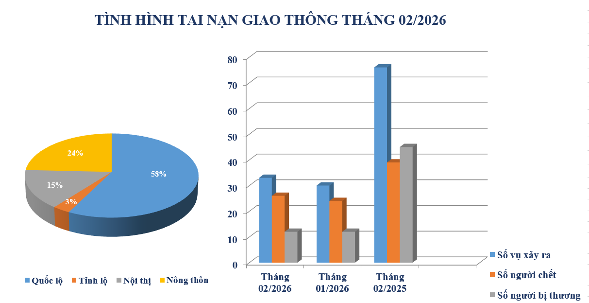 Biểu đồ số liệu về tình hình tai nạn giao thông tháng 02/2026
