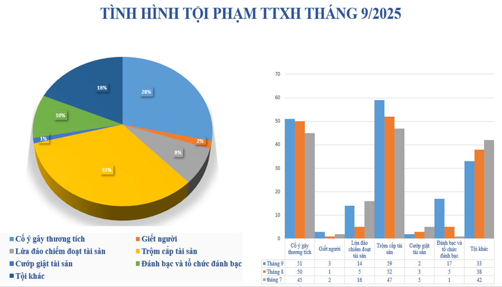 Biểu đồ phạm tội về trật tự xã hội tháng 9/2025