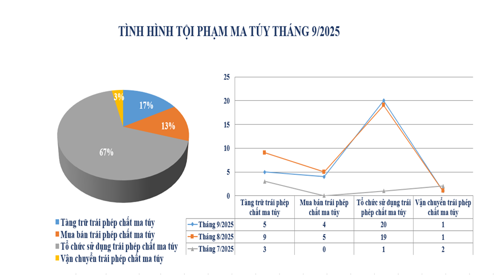 Biểu đồ tội phạm về ma túy tháng 9/2025