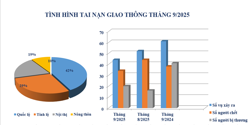 Biểu đồ số liệu về tình hình tai nạn giao thông tháng 9/2025