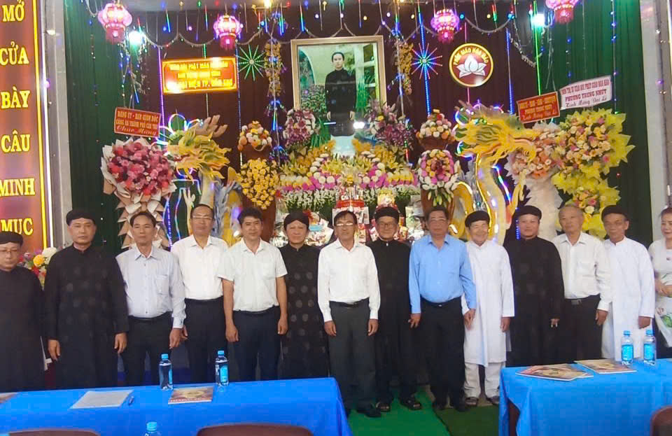 Thừa ủy quyền của Đảng ủy, lãnh đạo Công an thành phố Cần Thơ, lãnh đạo Phòng An ninh nội địa tặng hoa, chúc mừng Đại lễ Đản sinh Đức Huỳnh giáo chủ Phật giáo Hòa Hảo đến Ban Đại diện Phật giáo Hòa Hảo thành phố Cần Thơ