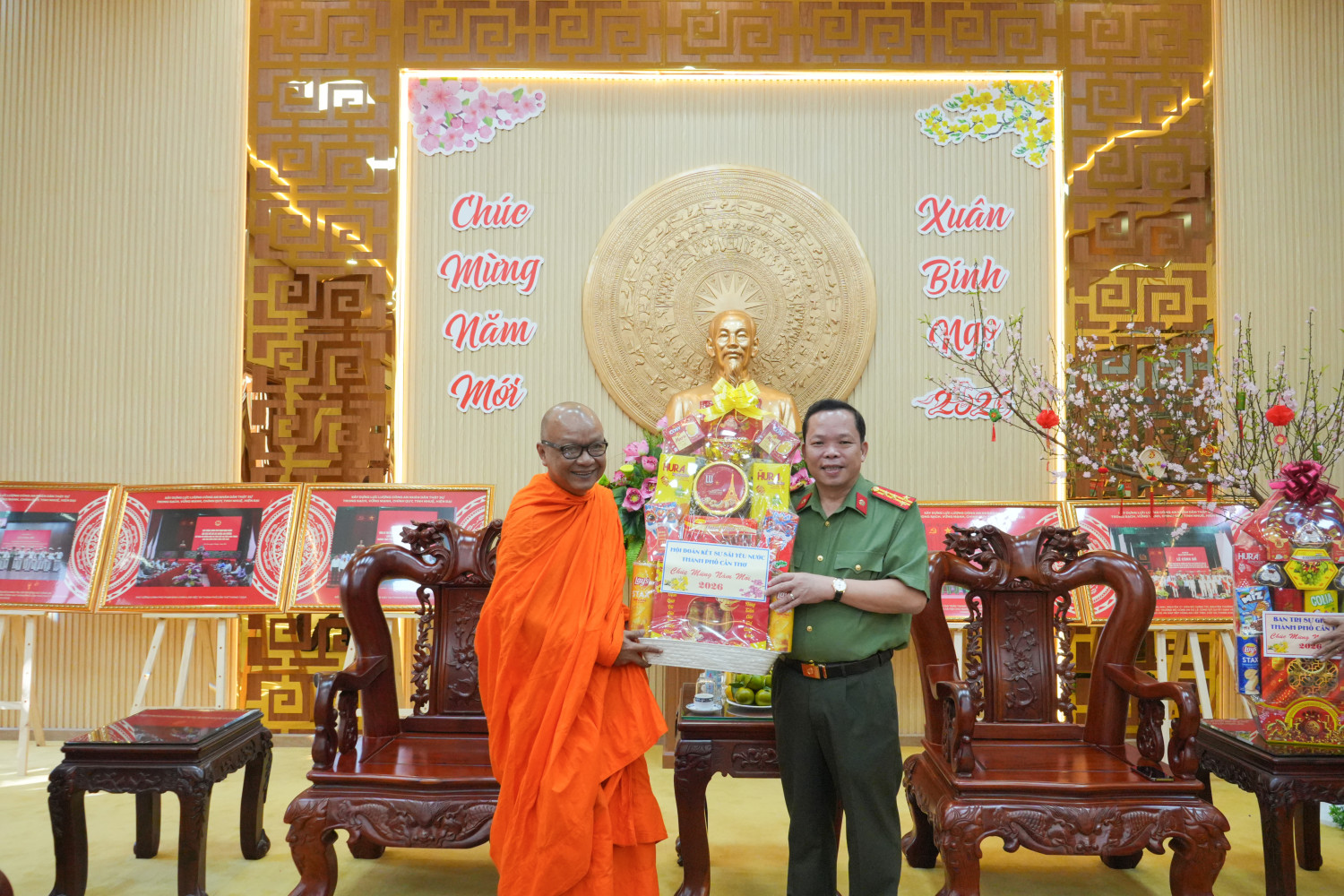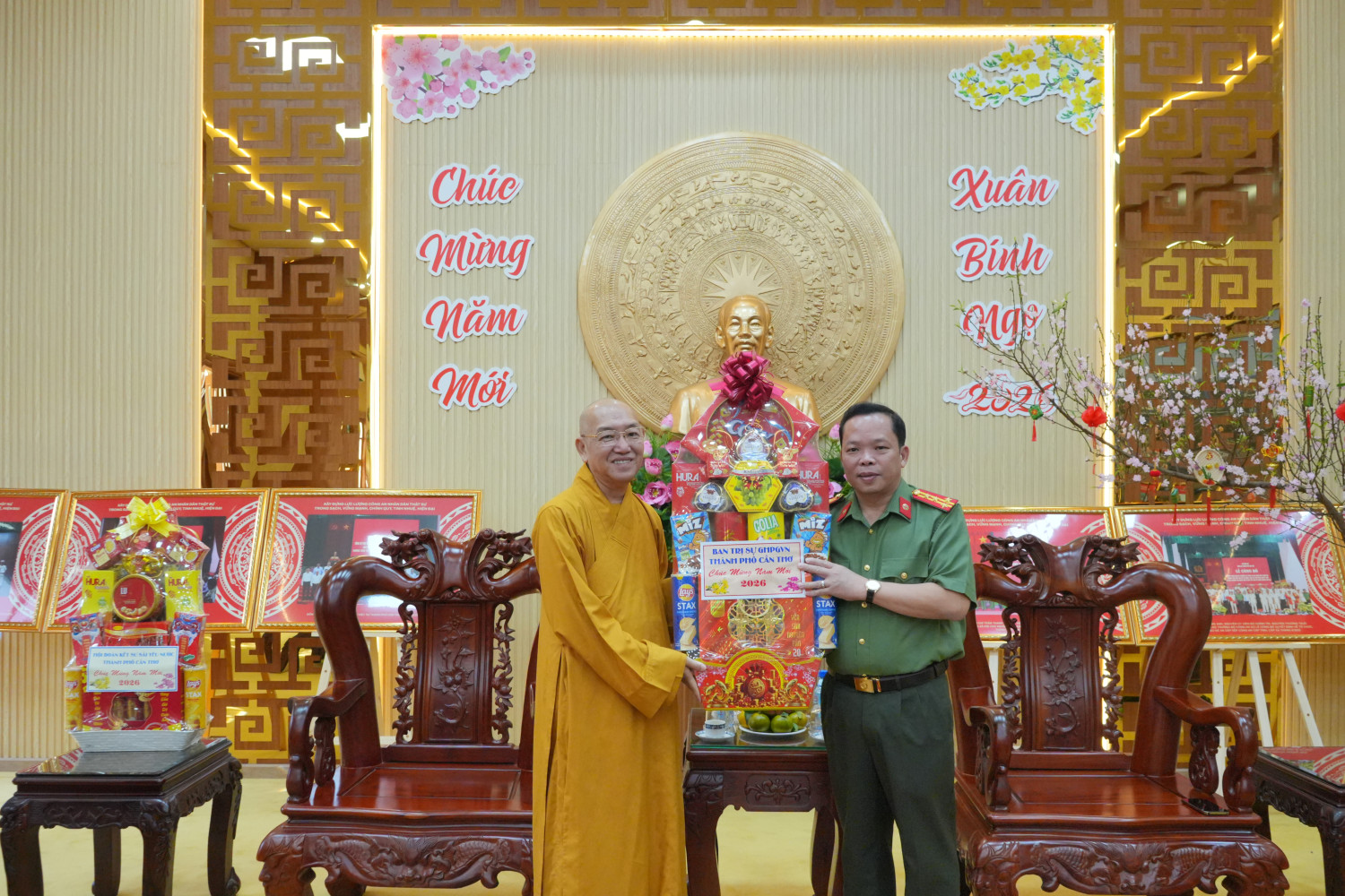 Đồng chí Đại tá Nguyễn Văn Thắng, Ủy viên Ban Thường vụ Đảng ủy, Phó Giám đốc Công an thành phố Cần Thơ chủ trì tiếp đoàn Hội đoàn kết sư sãi yêu nước thành phố Cần Thơ thăm, chúc mừng Công an thành phố nhân dịp Tết Nguyên đán Bính Ngọ 2026, do Hòa thượng Lý Hùng, Ủy viên Hội đồng Trị sự Giáo hội Phật giáo Việt Nam, Phó Hội trưởng Thường trực Hội đoàn kết sư sãi yêu nước thành phố Cần Thơ, Phó Trưởng Ban Trị sự Giáo hội Phật giáo Việt Nam thành phố Cần Thơ làm Trưởng đoàn