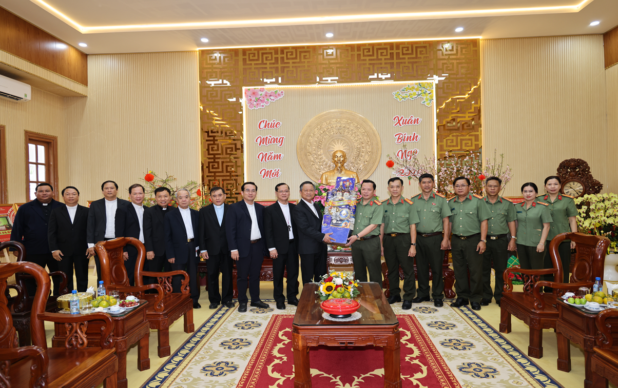 Đồng chí Đại tá Nguyễn Văn Thắng, Ủy viên Ban Thường vụ Đảng ủy, Phó Giám đốc Công an thành phố Cần Thơ chủ trì tiếp đoàn Tòa Giám mục Cần Thơ và Tòa Giám mục Long Xuyên thăm, chúc mừng Công an thành phố nhân dịp Tết Nguyên đán Bính Ngọ 2026, do Giám mục Chính tòa Giáo phận Cần Thơ Lê Tấn Lợi và Giám mục Chính tòa Giáo phận Long Xuyên Trần Văn Toản làm Trưởng đoàn