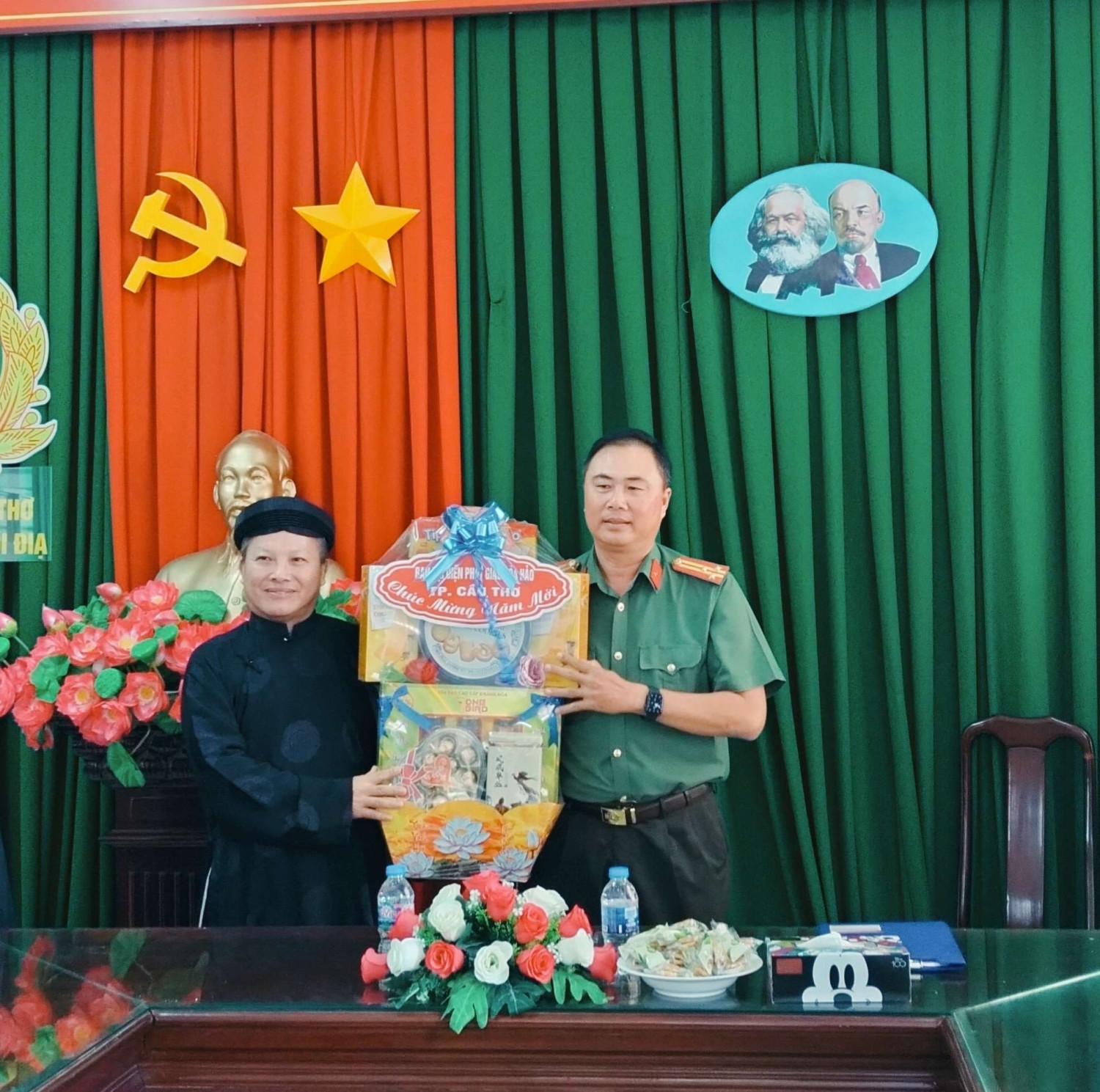 Ông Nguyễn Hoàng Khởi, Trưởng Ban Đại diện Phật giáo Hòa Hảo thành phố Cần Thơ thăm, chúc mừng Phòng An ninh nội địa nhân dịp Tết Nguyên đán Bính Ngọ 2026