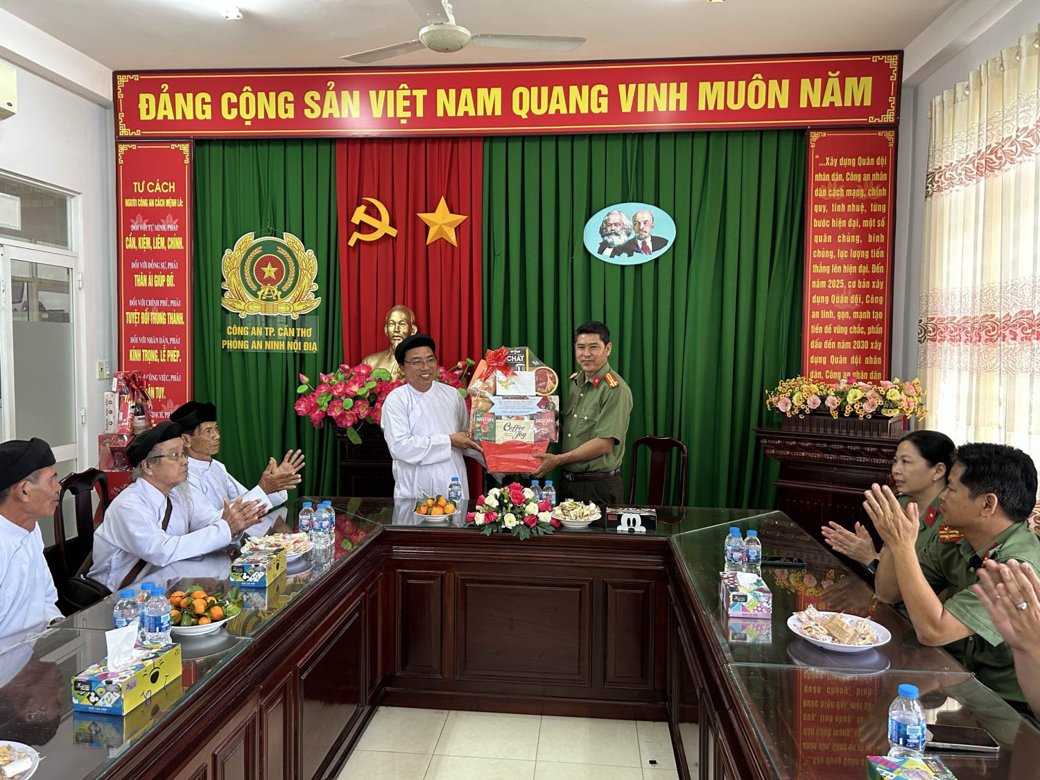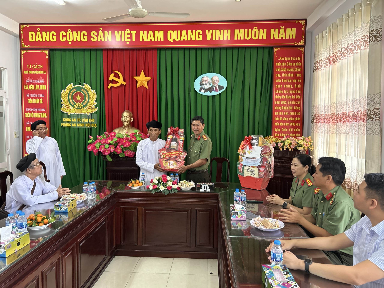 Nhân dịp Xuân Bính Ngọ 2026, trong không khí vui tươi, phấn khởi chuẩn bị đón Tết cổ truyền của dân tộc, Phòng An ninh nội địa đã vinh dự đón tiếp các đoàn đại diện chức sắc, chức việc, tín đồ của các tổ chức tôn giáo trên địa bàn thành phố Cần Thơ đến thăm, chúc mừng. Đây là hoạt động có ý nghĩa thiết thực, thể hiện mối quan hệ gắn bó, đồng hành giữa các tổ chức tôn giáo với lực lượng Công an thành phố nói chung, Phòng An ninh nội địa nói riêng trong công tác bảo đảm an ninh quốc gia, giữ gìn trật tự, an toàn xã hội và xây dựng khối đại đoàn kết toàn dân tộc.