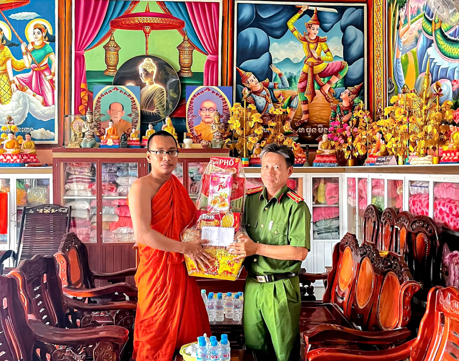 Tại các nơi đến thăm, đại diện Công an phường đã gửi lời chúc mừng năm mới đến các vị sư sãi cùng đồng bào Phật tử, chúc bà con đón Tết trong không khí vui tươi, an lành, đoàn kết, giữ gìn và phát huy bản sắc văn hóa truyền thống tốt đẹp của dân tộc Khmer.