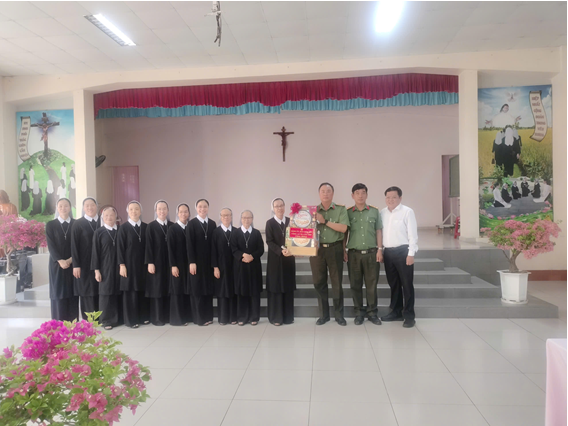 Đồng chí Thượng tá Phạm Hồng Phước, Trưởng Phòng An ninh nội địa thăm, chúc mừng Lễ Phục sinh tại Dòng Mến Thánh Giá Cần Thơ, phường Sóc Trăng, thành phố Cần Thơ