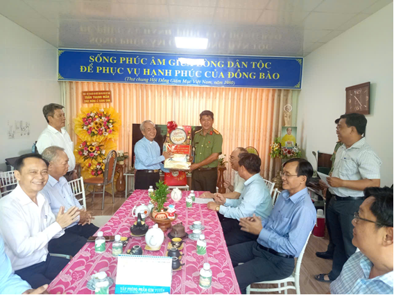 Đại tá Huỳnh Hoài Hận, Ủy viên Ban Thường vụ Đảng ủy, Phó Giám đốc Công an thành phố thăm, tặng quà, chúc mừng lễ Phục sinh tại Ban Đại diện Giáo hội Báp - tít Việt Nam thành phố Cần Thơ