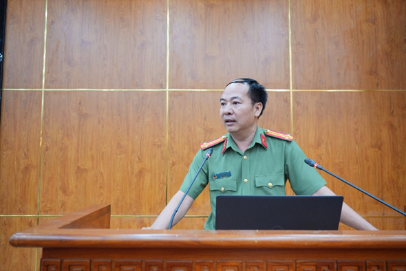 Lãnh đạo Phòng An ninh mạng và phòng, chống tội phạm sử dụng công nghệ cao báo cáo tại buổi tập huấn
