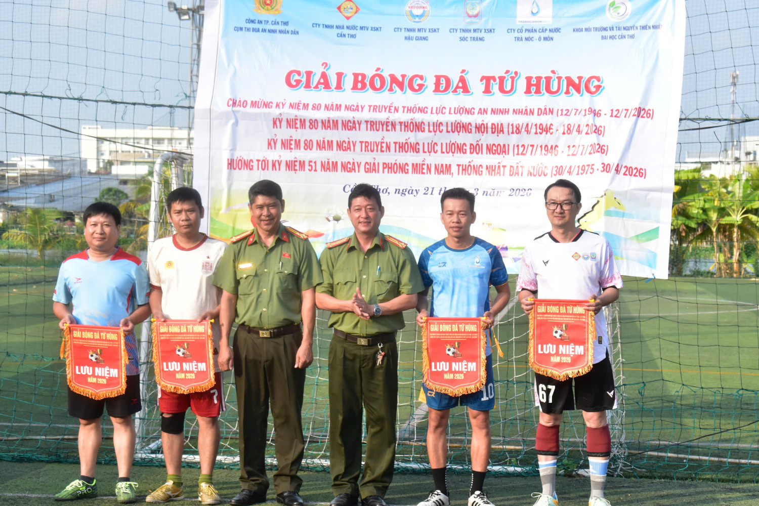Chào mừng kỷ niệm 95 năm Ngày thành lập Đoàn Thanh niên Cộng sản Hồ Chí Minh (26/3/1931 - 26/3/2026); 70 năm Ngày truyền thống Đoàn Thanh niên Cộng sản Hồ Chí Minh Bộ Công an (1956 - 2026); hướng tới kỷ niệm 51 năm Ngày Giải phóng miền Nam, thống nhất đất nước (30/4/1975 - 30/4/2026); 80 năm Ngày Truyền thống lực lượng An ninh nhân dân (12/7/1946 - 12/7/2026); 80 năm Ngày Truyền thống lực lượng An ninh nội địa (18/4/1946 - 18/4/2025); 80 năm Ngày Truyền thống lực lượng An ninh đối ngoại (12/7/1946 - 12/7/2026). Ngày 21/3/2026, tại sân bóng đá Riverside Cồn Khương 1, phường Cái Khế, thành phố Cần Thơ, Cụm thi đua An nhân dân, Công an thành phố Cần Thơ đã phối hợp với Khoa Môi trường và Tài nguyên thiên nhiên, Đại học Cần Thơ; Công ty TNHH Nhà nước MTV xổ số kiến thiết Cần Thơ, Công ty TNHH MTV xổ số kiến thiết Sóc Trăng, Công ty TNHH MTV xổ số kiến thiết Hậu Giang; Công ty Cổ phần Cấp nước Trà Nóc - Ô Môn tổ chức “Giải bóng đá tứ hùng”. Giải đấu không chỉ tạo sân chơi thể thao lành mạnh mà còn thể hiện tinh thần đoàn kết, giao lưu giữa các lực lượng, góp phần nâng cao sức khỏe phục vụ sự nghiệp xây dựng và bảo vệ Tổ quốc Việt Nam xã hội chủ nghĩa.