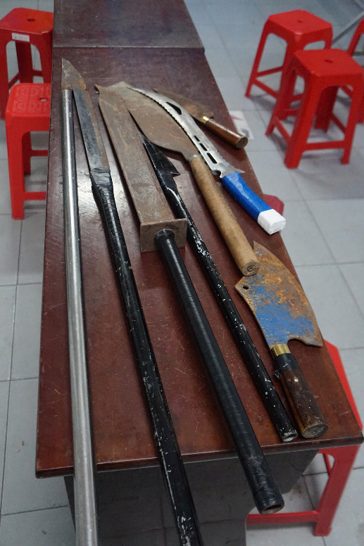 Được sự tuyên truyền, vận động tích cực từ chính quyền địa phương và lực lượng Công an, thanh thiếu niên tự nguyện đến Công an xã Thạnh Xuân để giao nộp hung khí