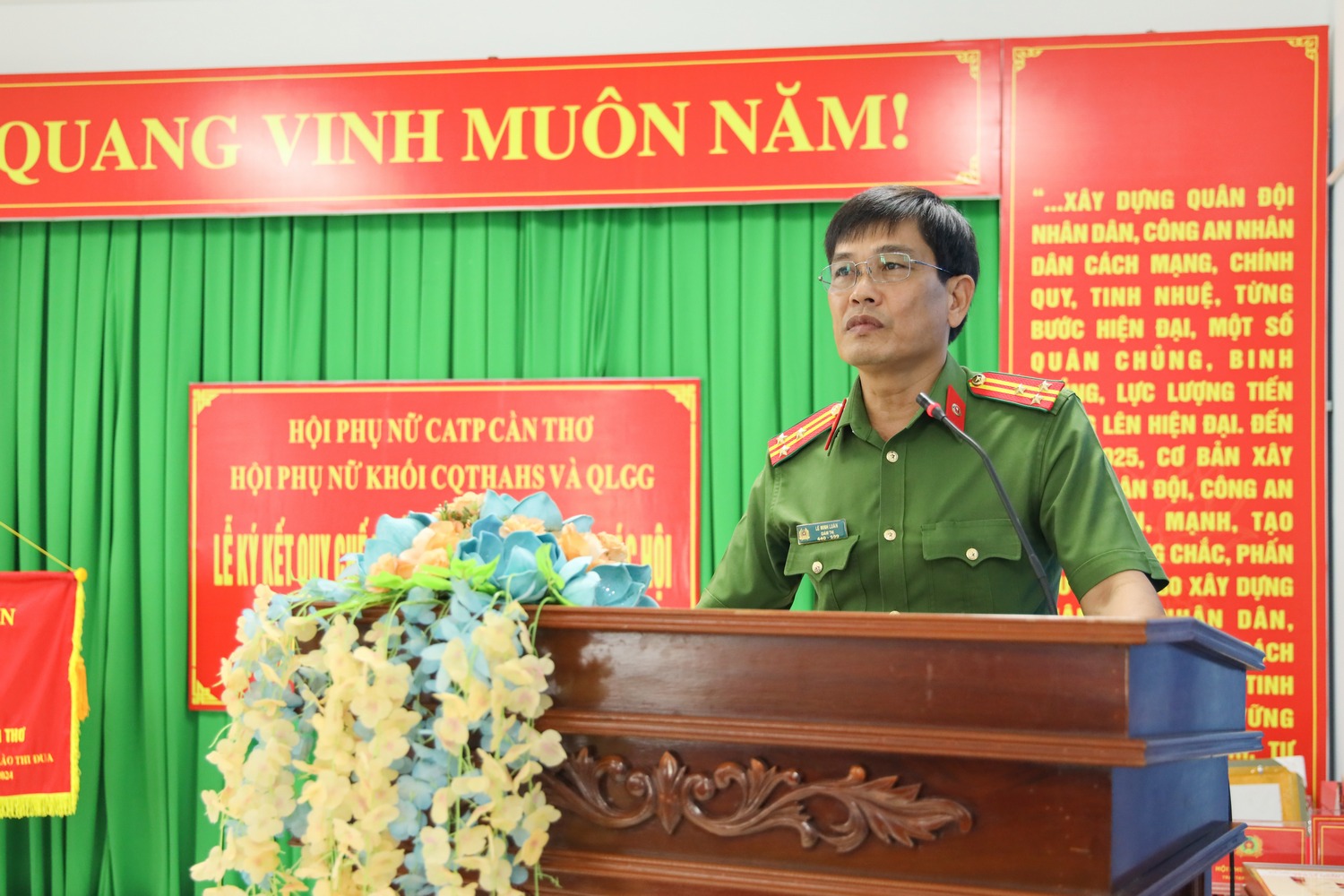 Phát biểu tại buổi lễ, Thượng tá Lê Minh Luân ghi nhận, đánh giá cao lễ ký kết và chương trình phối hợp do Hội Phụ nữ đơn vị tổ chức, việc ký kết quy chế phối hợp là bước cụ thể hóa chủ trương tăng cường trách nhiệm, mối quan hệ phối hợp giữa Hội Phụ nữ Khối Cơ quan Thi hành án hình sự và quản lý giam giữ trực thuộc Công an TP Cần Thơ. Đồng chí nhấn mạnh vị thế, vai trò của cán bộ, hội viên Phụ nữ trong thực hiện nhiệm vụ chính trị mà Đảng, Nhà nước và Ngành giao phó, qua đó phát huy sức mạnh tổng hợp để thực hiện thắng lợi nghị quyết, kế hoạch công tác của toàn thể đơn vị…