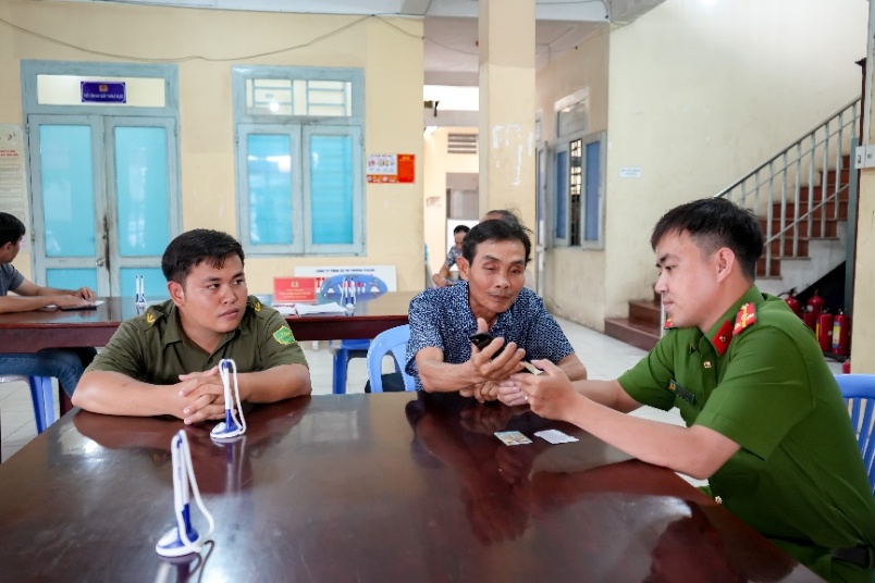 Lực lượng tham gia bảo vệ ANTT ở cơ sở cùng lực lượng Công an hướng dẫn người dân sử dụng Vneid để hỗ trợ bầu cử Quốc hội