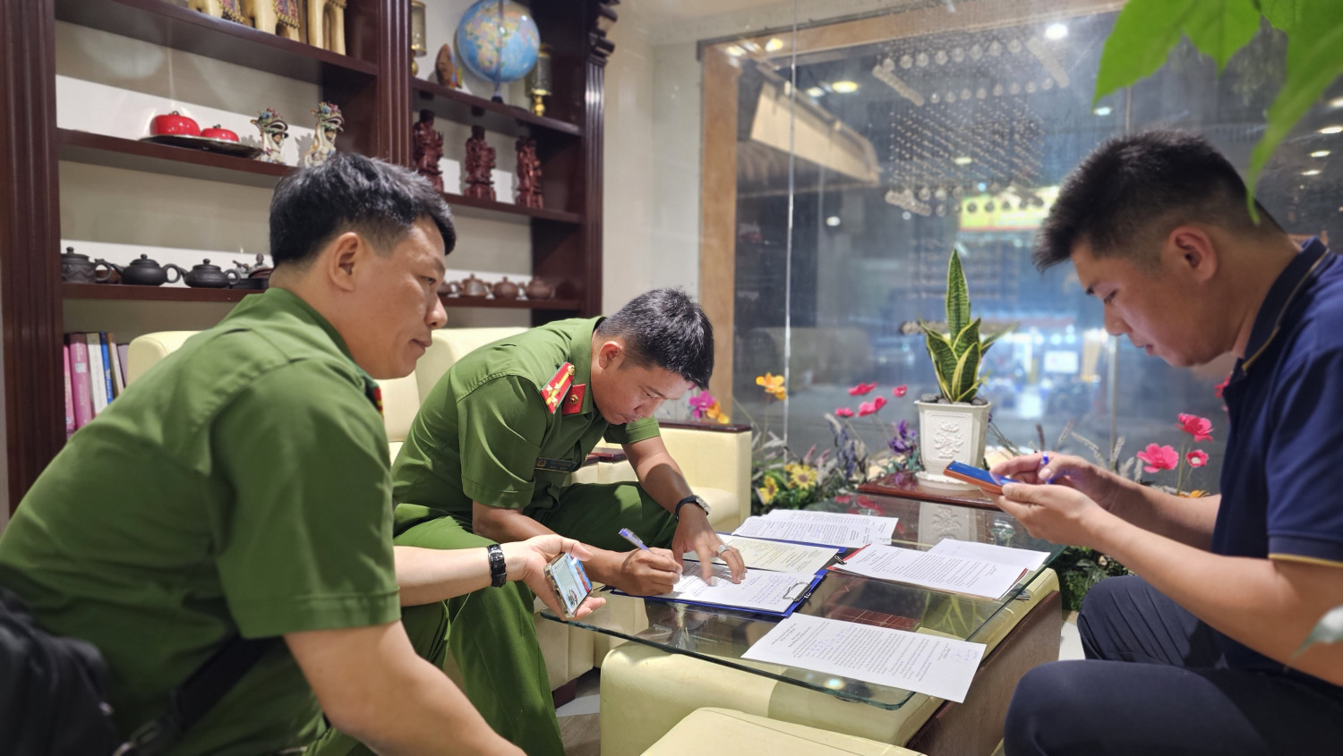 Cán bộ phòng Cảnh sát quản lý hành chính về trật tự xã hội, Công an thành phố Cần Thơ kiểm tra, hướng dẫn cơ sở kinh doanh dịch vụ lưu trú
