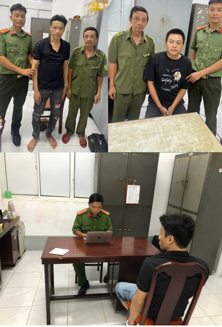 Công an phường Thốt Nốt tạm giữ và làm việc với các đối tượng