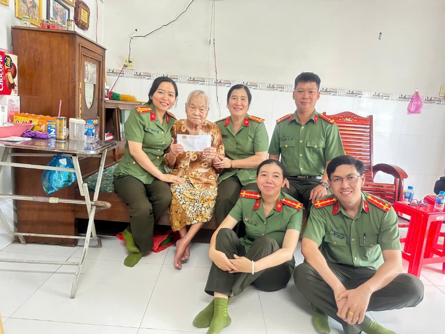 Đại diện Lãnh đạo, đoàn viên, hội viên Phòng Tổ chức cán bộ chụp ảnh lưu niệm cùng Mẹ Việt Nam Anh hùng Huỳnh Thị Lành