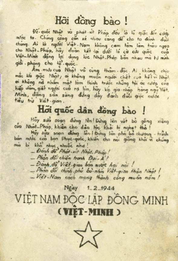 Lời kêu gọi của Mặt trận Việt Minh, ngày 01/02/1944.