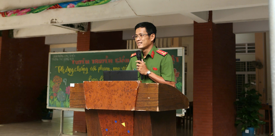 Công an phường Long Tuyền tuyên truyền, phổ biến pháp luật cho các em học sinh