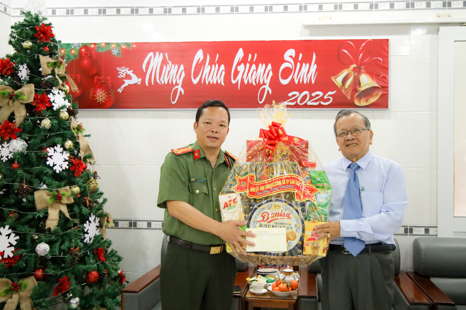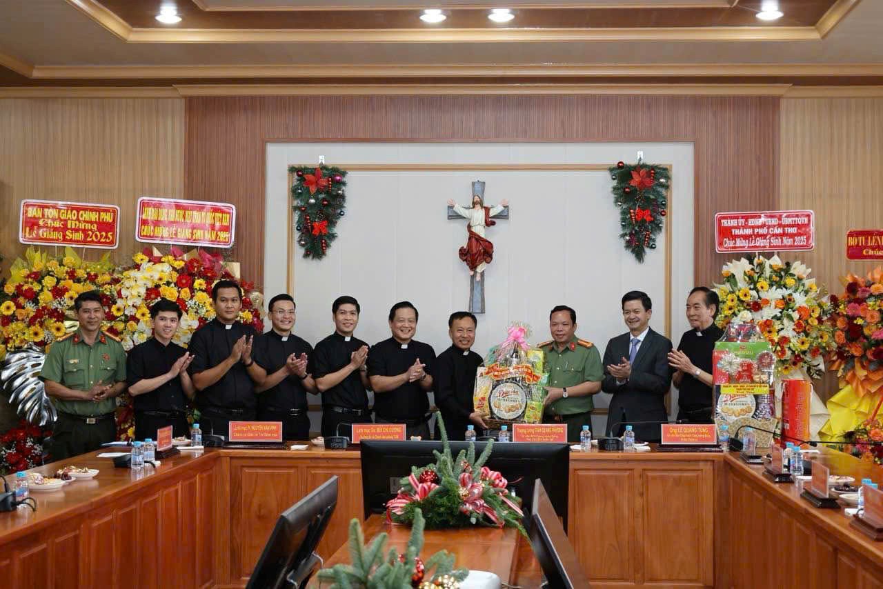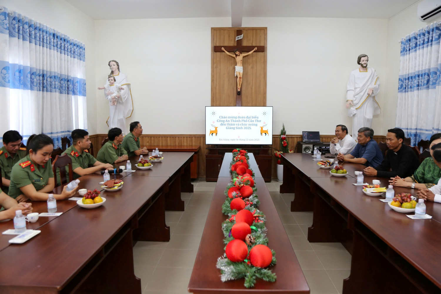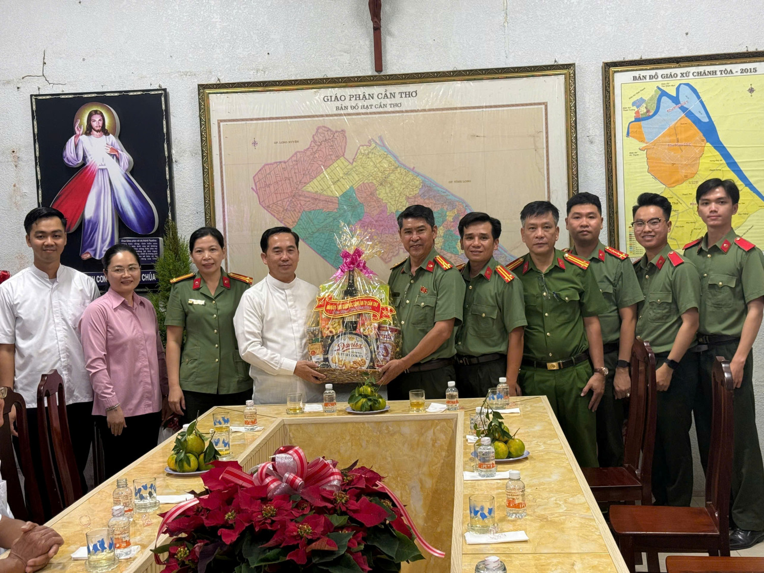 Trước đó, vào ngày 15/12, đồng chí Đại tá Nguyễn Văn Thắng, Ủy viên Ban Thường vụ Đảng ủy,Phó Giám đốc Công an thành phố cùng Đảng ủy, Lãnh đạo Phòng An ninh nội địa đến thăm, tặng quà và chúc mừng Giáng sinh tại Ban Đại diện Hội thánh Tin Lành Việt Nam (miền Nam) thành phố Cần Thơ, Trung tâm mục vụ Giáo phận Cần Thơ, Đại Chủng viện Thánh Quý và Nhà thờ Giáo xứ Vị Tín. Tại mỗi nơi đến, đồng chí Phó Giám đốc Công an thành phố đã thông tin về kết quả đảm bảo an ninh, trật tự trên địa bàn thành phố trong thời gian qua. Trong đó, nổi bật là tình hình an ninh chính trị tiếp tục ổn định, tội phạm được kéo giảm, tình hình trật tự an toàn xã hội được đảm bảo. Đồng thời, đồng chí Phó Giám đốc Công an thành phố đánh giá cao những đóng góp tích cực của đồng bào Công giáo trong phong trào toàn dân bảo vệ an ninh Tổ quốc trên địa bàn, góp phần cùng lực lượng Công an thành phố thực hiện thắng lợi nhiệm vụ chính trị trong năm 2025. Đồng thời, từ ngày 18 - 22/12/2025 thừa ủy quyền của Giám đốc Công an thành phố, Đảng ủy, Lãnh đạo Phòng An ninh nội địa đã đến thăm hỏi, tặng quà, chức mừng Lễ Giáng sinh tại Tòa Giám mục Long Xuyên, Giáo xứ Đền Thánh Giuse An Bình, Giáo xứ Thạnh An, Giáo xứ Nam Hải, Giáo xứ Sóc Trăng, Giáo xứ Chính tòa Cần Thơ, Dòng Chúa Quan Phòng Cần Thơ, Tu viện Thánh Gia, Giáo xứ Bãi Giá, Dòng Mến Thánh giá Cần Thơ, Giáo xứ Cồn Mỹ Phước, Giáo xứ Oven, Hội thánh Tin Lành Việt Nam (miền Nam) Chi hội Sóc Trăng và một số cơ sở thờ tự Công giáo, Tin Lành trên địa bàn thành phố.