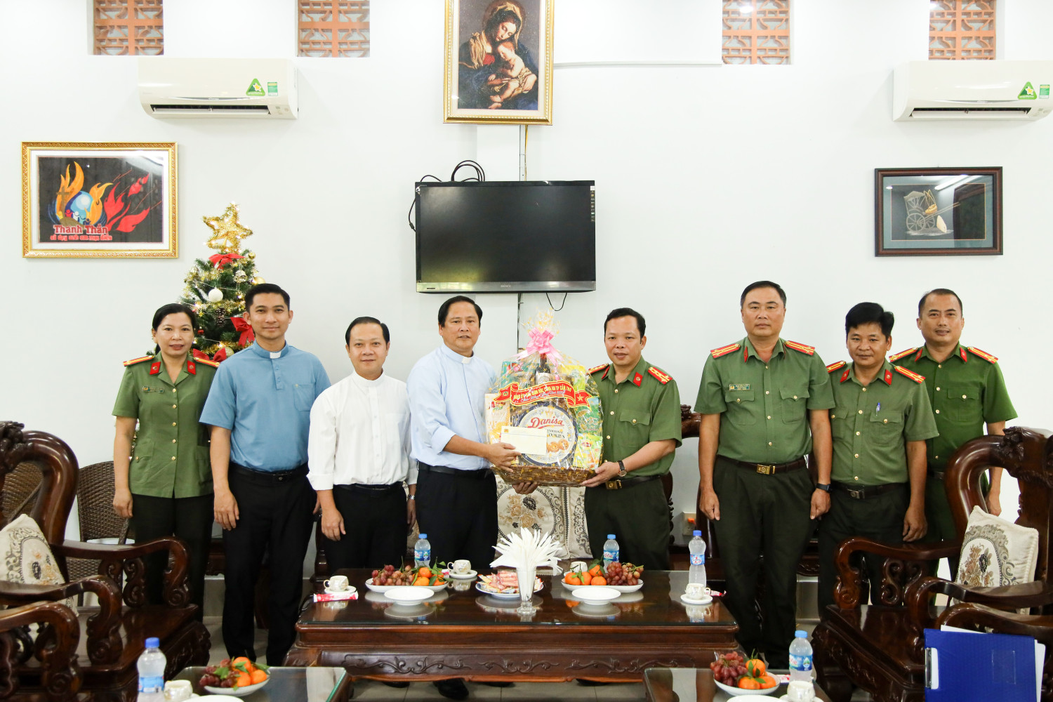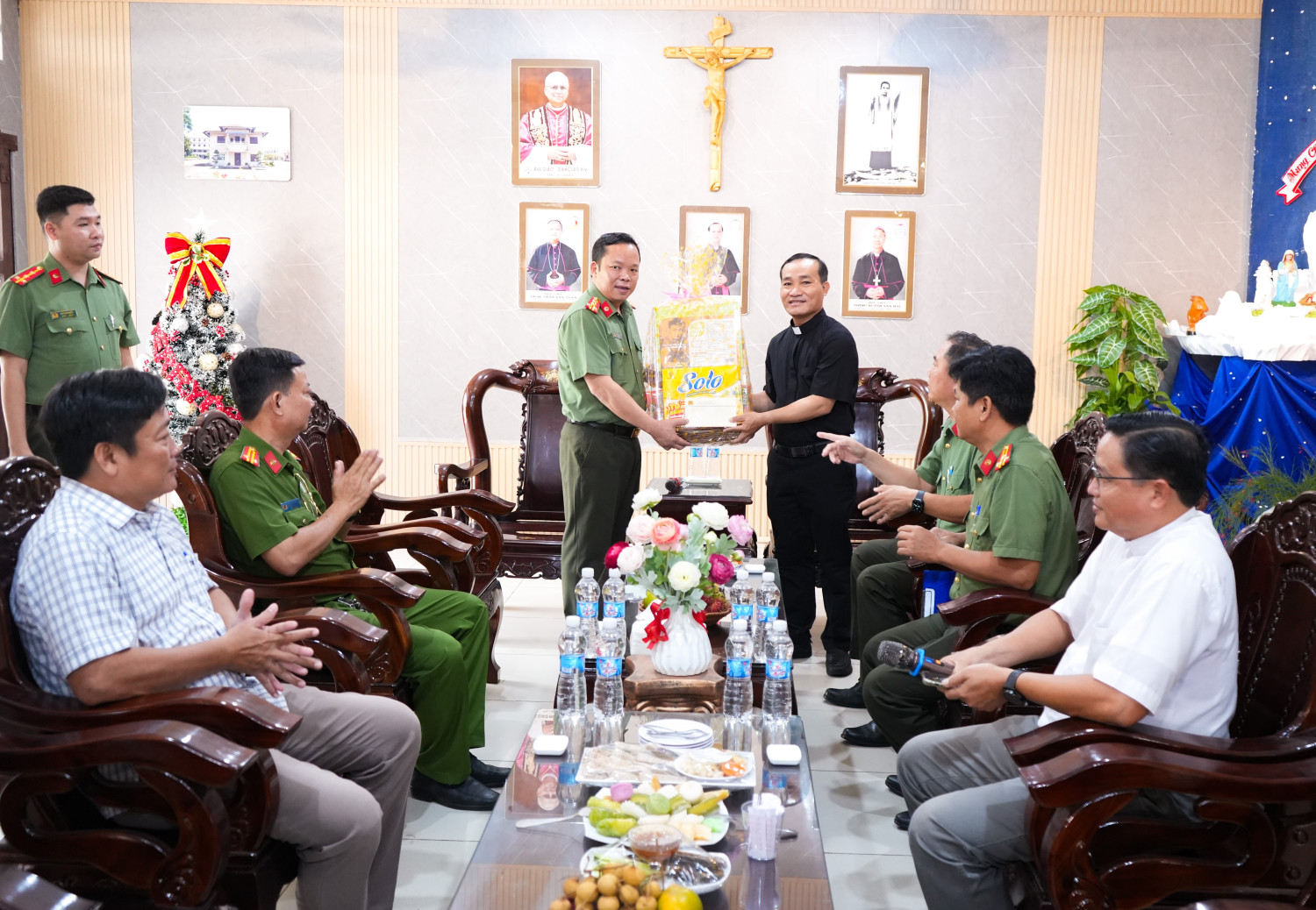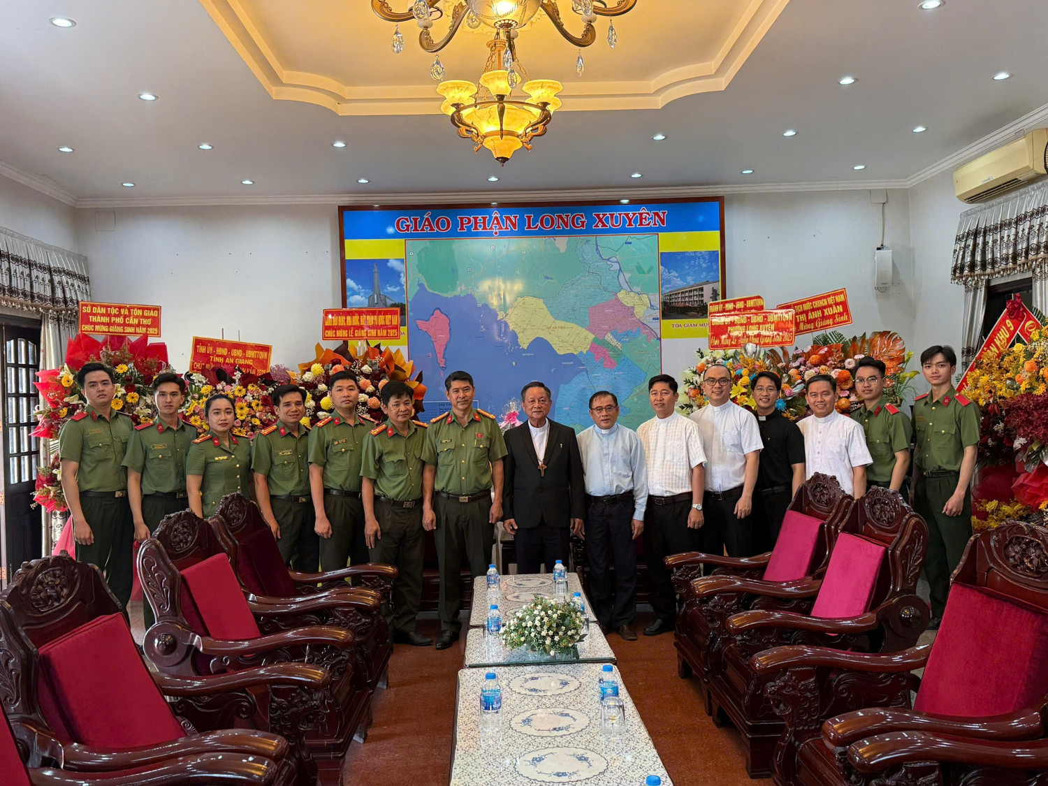 Thừa ủy quyền của Giám đốc Công an thành phố Cần Thơ, Lãnh đạo Phòng An ninh nội địa thăm, chúc mừng Lễ Giáng sinh tại Tòa Giám mục Long Xuyên, phường Long Xuyên, tỉnh An Giang