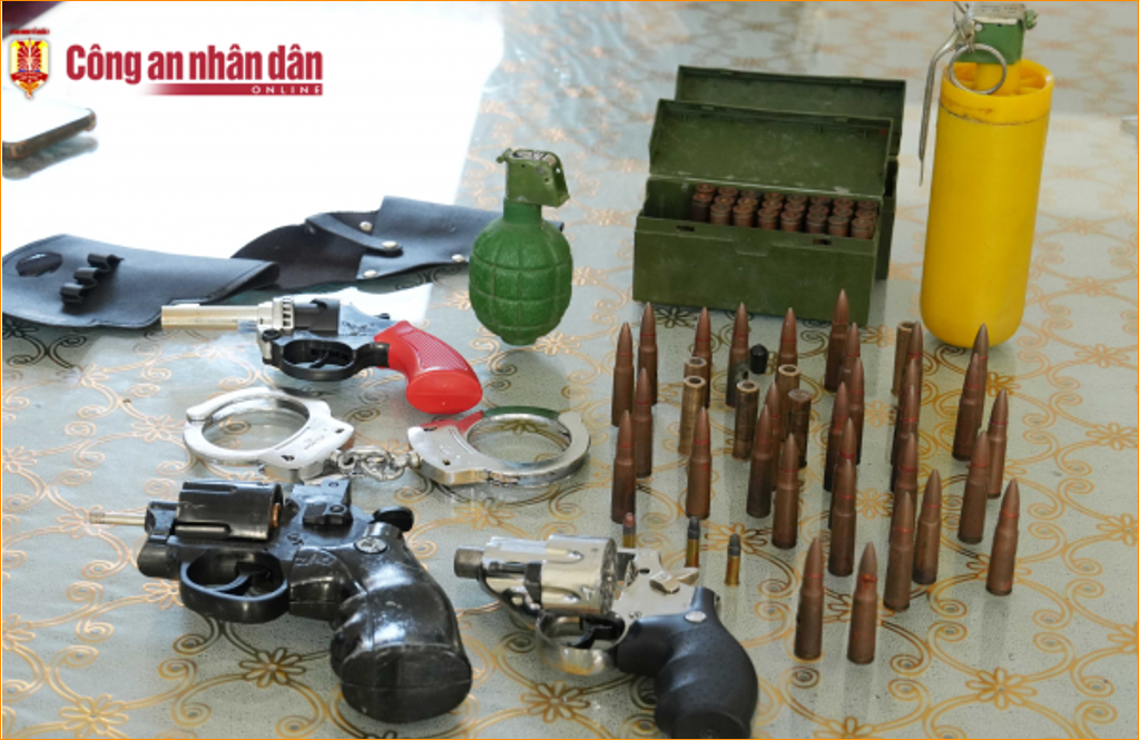 Trước đó, tối 7/5, tại ấp 4, xã Vĩnh Thuận Đông, huyện Long Mỹ (tỉnh Hậu Giang cũ) xảy ra vụ đánh nhau giữa 2 nhóm thanh niên và có đối tượng nổ súng. Nhận được tin báo, Phòng An ninh điều tra phối hợp với Phòng CSHS và Phòng CSĐTTP về ma túy tổ chức truy nóng ngay trong đêm để xác định các đối tượng liên quan. Đến sáng 8/5, trinh sát phát hiện, bắt giữ Lê Nguyễn Nhật Hoài (SN 1998, ngụ phường Long Mỹ). Khám xét khẩn cấp nơi ở, phương tiện của Hoài thu giữ 3 súng ngắn tự chế dạng rulo; 53 viên đạn; còng số 8; 2 vật giống quả nổ; trên 6,6g ma túy đá cùng nhiều vật dụng để sử dụng ma túy; 1 súng cồn và nhiều dao, kiếm tự chế.