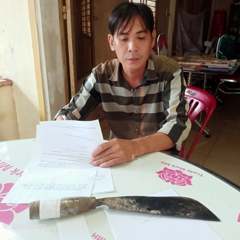 Bị can Ngô Hữu Hiền giao nộp hung khí gây án
