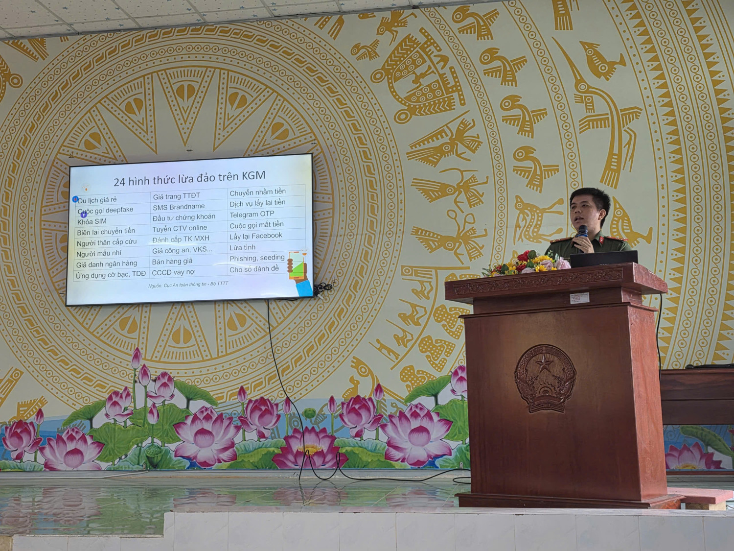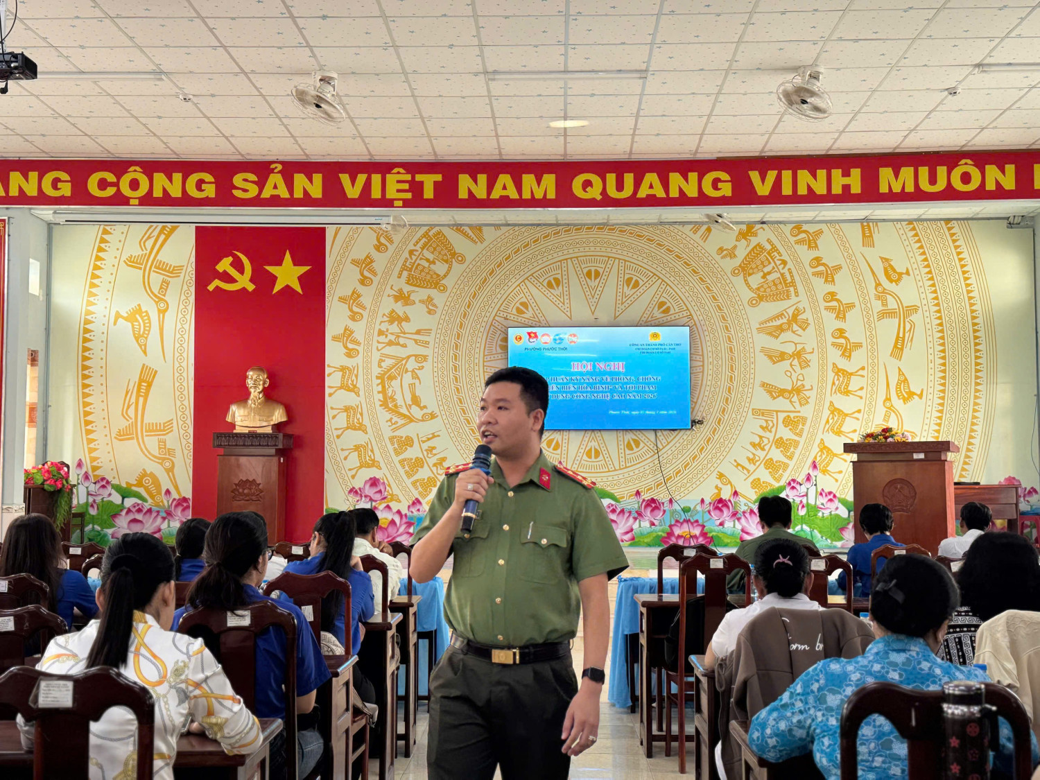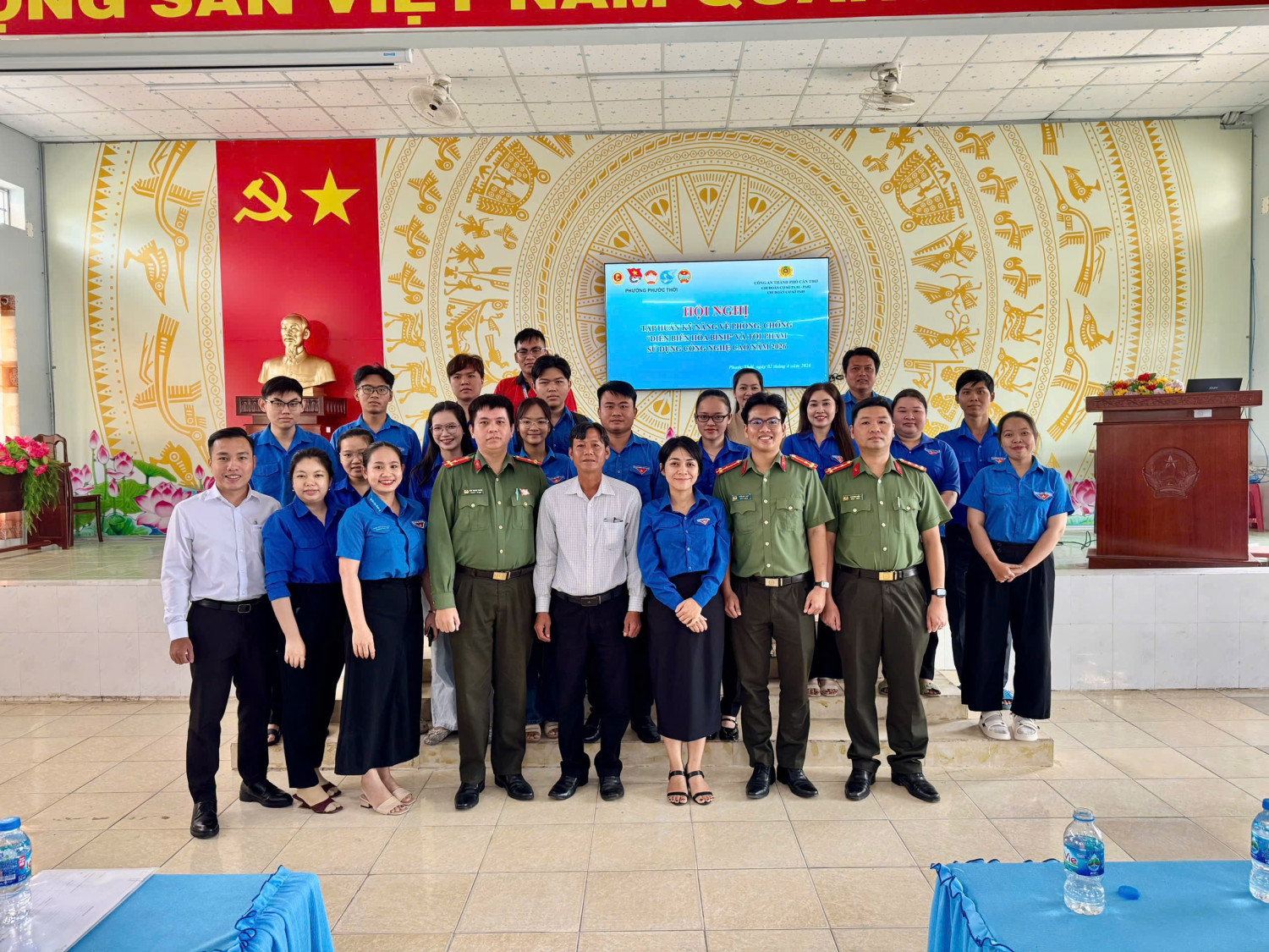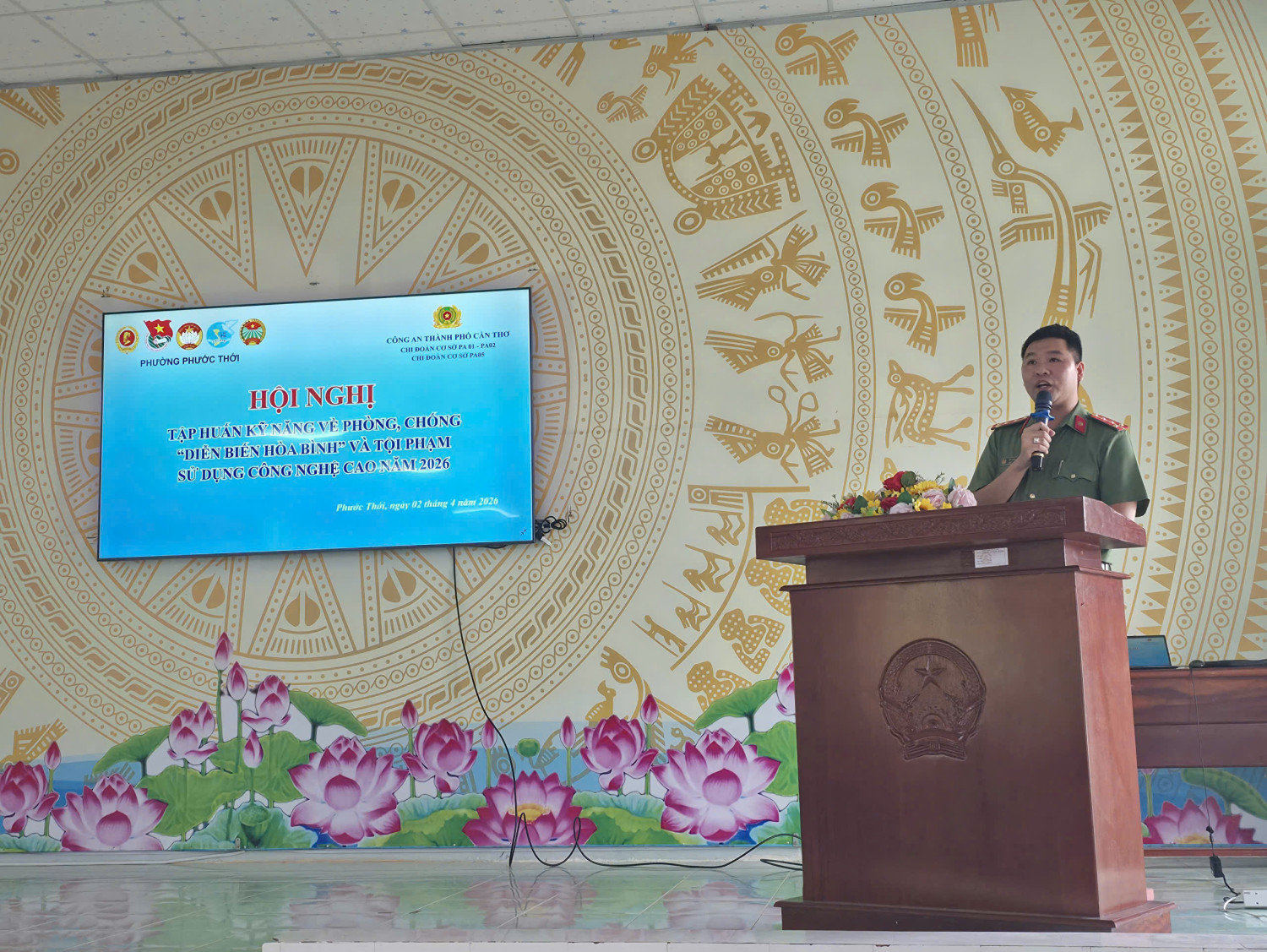 Ngày 02/4/2026 tại Hội trường Ủy ban nhân dân phường Phưới Thới; Phòng An ninh nội địa, Phòng An ninh đối ngoại, Phòng An ninh mạng và phòng, chống tội phạm sử dụng công nghệ cao phối hợp Đoàn Thanh niên cộng sản Hồ Chí Minh phường Phước Thới tổ chức Hội nghị tập huấn cho cán bộ đoàn, đoàn viên, hội viên, Chi hội trưởng các Chi hội: Nông dân, Phụ nữ, Cựu Chiến binh các khu vực trên địa bàn phường với chủ đề: Nhận diện và đấu tranh phòng, chống chiến lược “diễn biến hòa bình” trong tình hình hiện nay và kỹ năng phòng, chống tội phạm sử dụng công nghệ cao; công tác đảm bảo an ninh mạng, kỹ năng sử dụng mạng xã hội thông minh, an toàn.