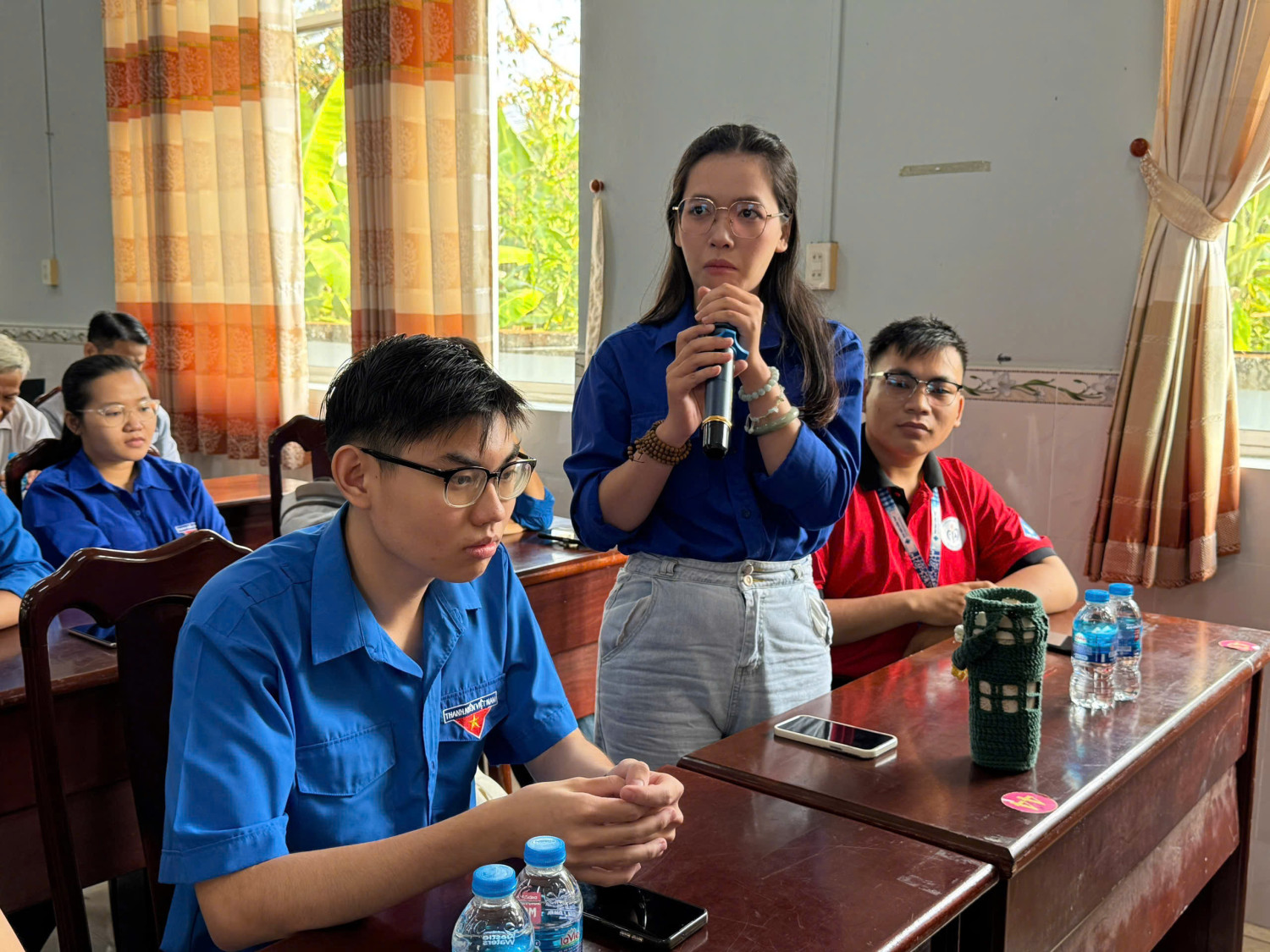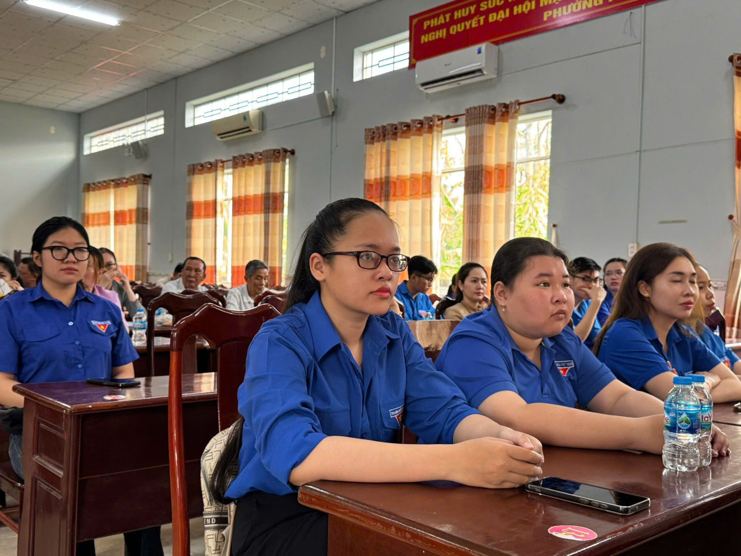 Đoàn viên, hội viên phường Phước Thới trao đổi, theo dõi tại Hội nghị tập huấn
