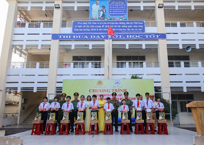Dịp này, Công an thành phố trao tặng 20 phần quà cho các em học sinh giỏi có hoàn cảnh khó khăn nhằm động viên, khích lệ tinh thần vượt khó, tiến bộ trong học tập.