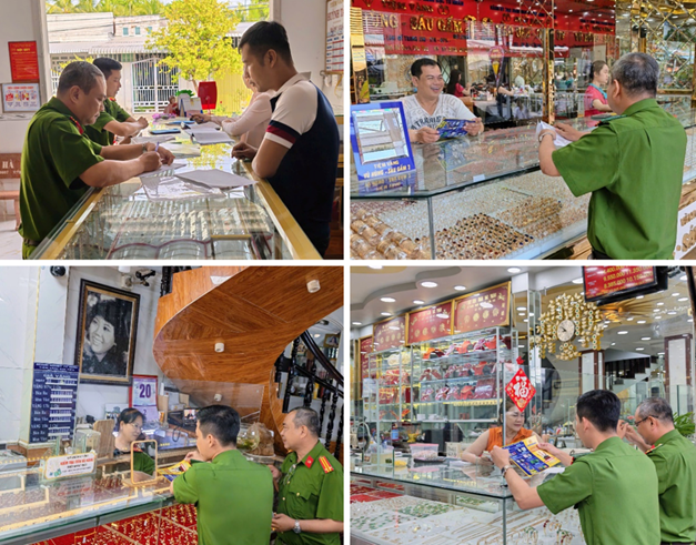 Lực lượng Công an xã trực tiếp đến từng hộ kinh doanh để tuyên truyền, phổ biến các quy định của pháp luật.